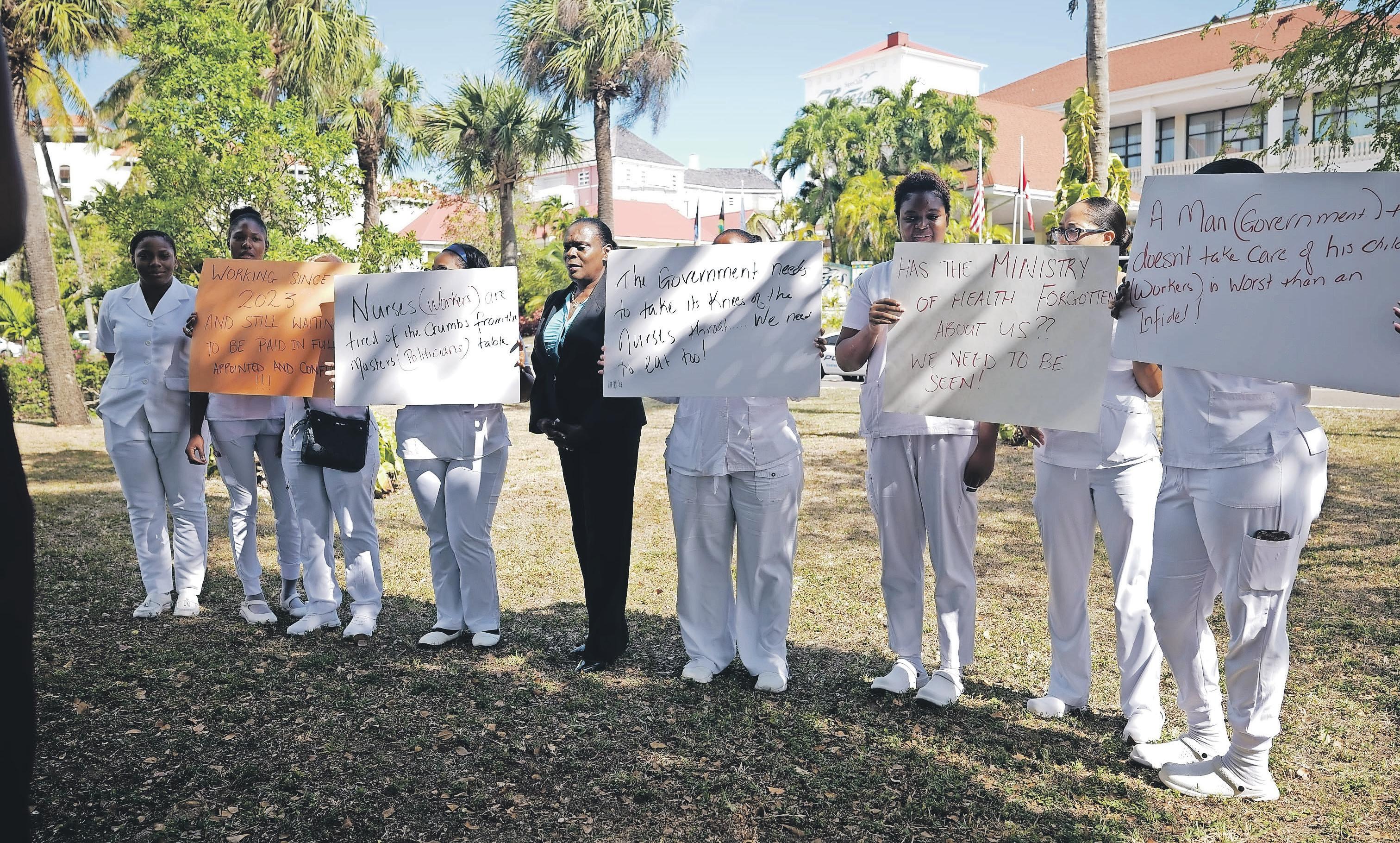 led by Bahamas Nurses Union president Muriel lightbourne, the protesters condemned the Ministry of Health and Wellness for recruiting Ghanaian healthcare workers while dozens of Bahamian graduate nurses — some allegedly working unpaid or for stipends since 2023 — remain