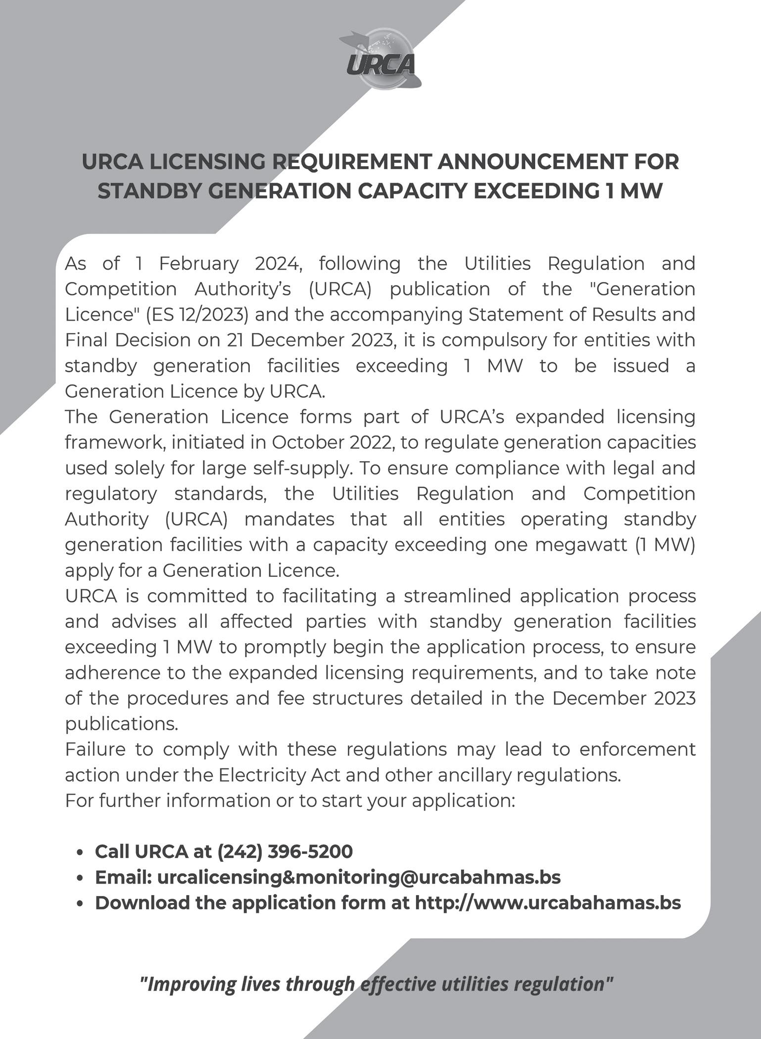Utilities Regulation & Competition Authority (URCA).
