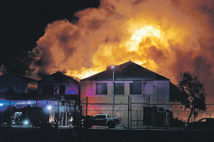 Multiple buildings burned in a major fire last night on Bay Street. Photos: Chappell Whyms Jr