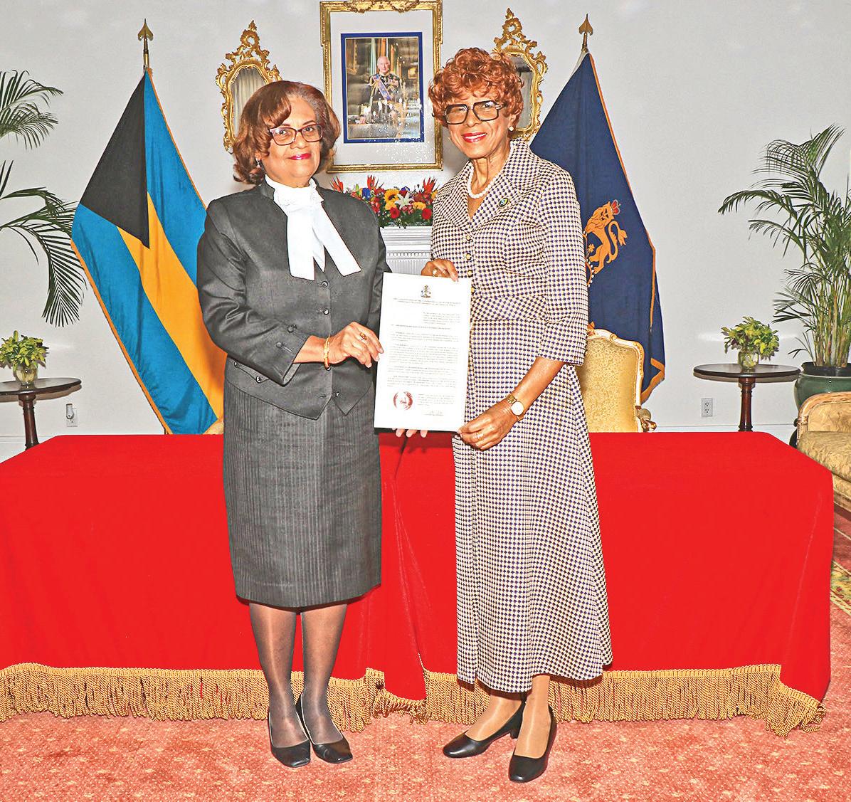 MADA M Justice Maureen Crane-Scott was administered the Oath of Allegiance, the Judicial Oath and presented with the Letter of Appointment as acting president of the Court of Appeal by Governor General Dame Cynthia ‘Mother’ Pratt during a Swearing-In Ceremony in the Drawing Room at Government House on Thursday, May 1, 2025.