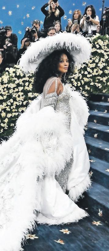 Cara says: She owned the “blue” carpet atthis event,no oneelse broughtthe dramathewayMissRossdid,itwasjusttrue toher divaform. Ialso reallyloved thatthe namesofher familyandgrandchildrenwere embroidered onthe train. Shekilled it – he end.