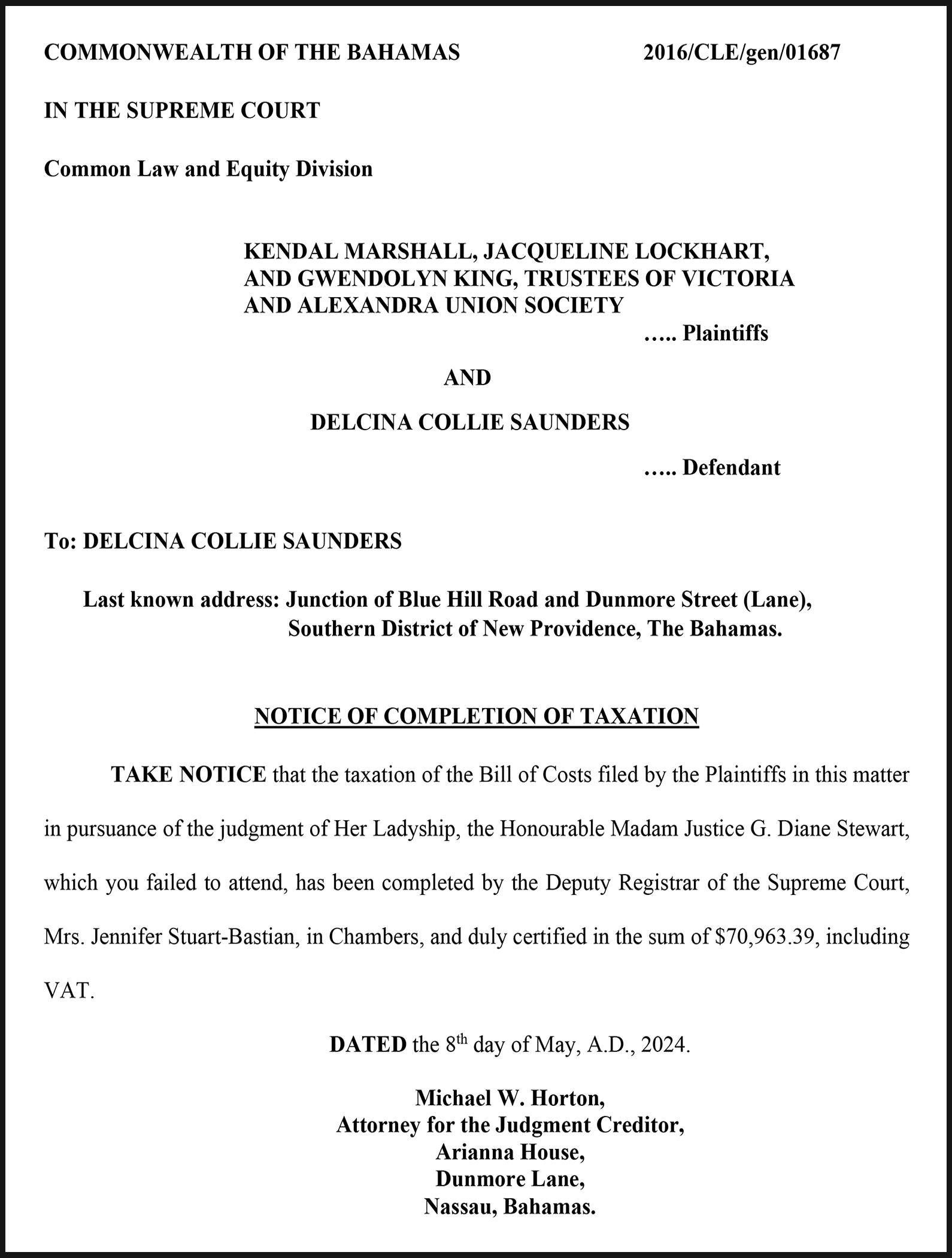 NOTICE is hereby given that MARK ANTHONY HUNTER of Maxwell Lane #3 off Farrington Road, Nassau, The Bahamas, is applying to the Minister responsible for Nationality and Citizenship, for registration/ naturalization as a citizen of The Bahamas, and that any person who knows any reason why registration/naturalization should not be granted, should send a written and signed statement of the facts within twenty-eight days from the 12th day of May, 2025 to the Minister responsible for nationality and Citizenship, P.O. Box N-7147, Nassau, Bahamas.
