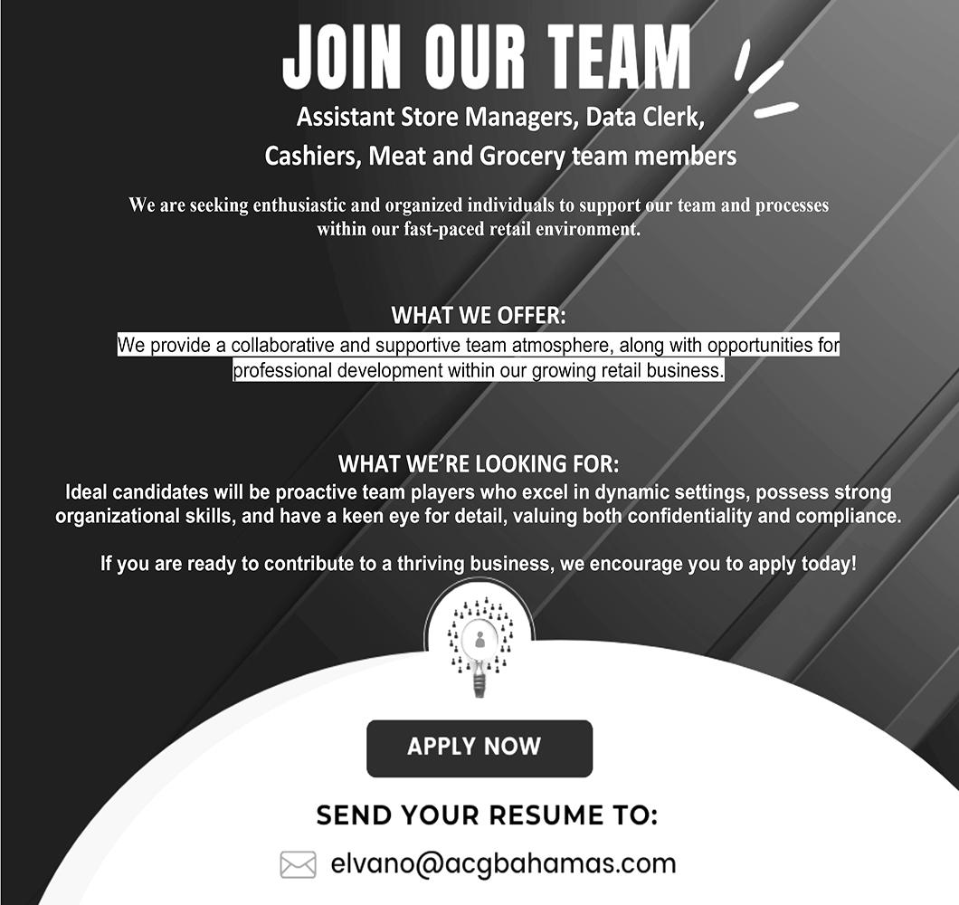 “I mean, it’s not just me. All the places in Abaco, we’re all looking to get some more help, because as the business builds we need more and more qualified staff. And tourists coming in now are looking for a little more sophistication than maybe they used to. But Abaco is wonderful. We don’t want all of our talented and smart, wonderful young people to have to move away to get a good job.”
