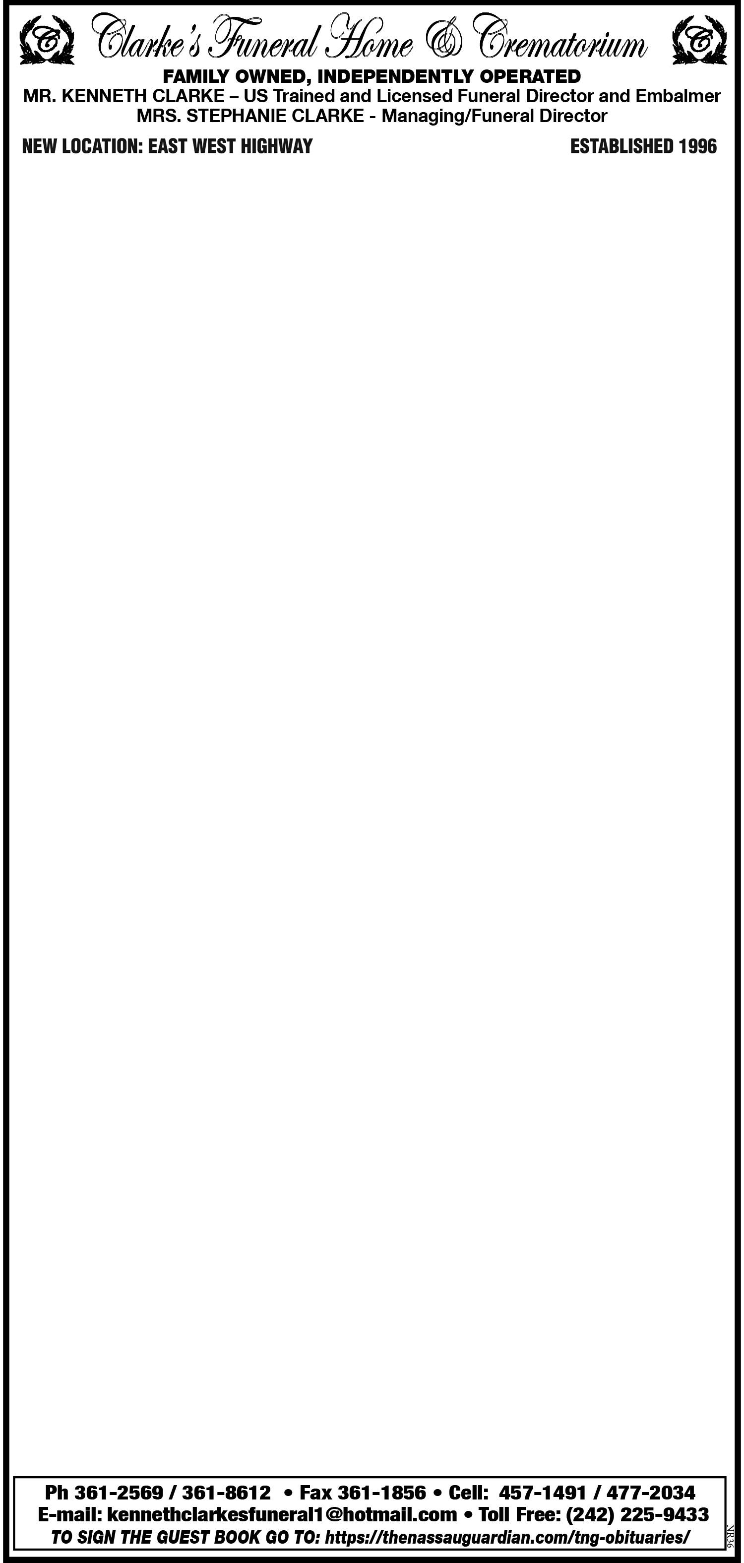 Left to mourn his passing are his surviving Siblings: Bernadette Clarke, Reverend Epsi Lavern Rolle and Gregory Clarke.