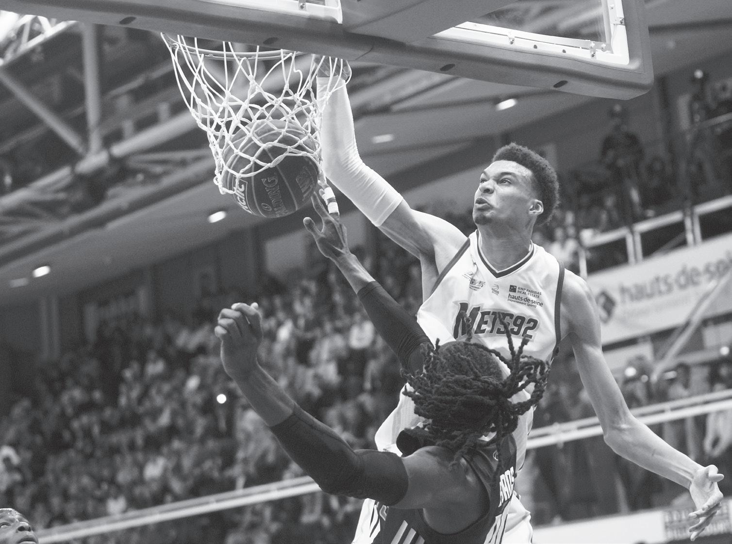 BOULOGNE-Levallois’ Victor Wembanyama dunks during the Elite basketball match BoulogneLevallois against Paris at the Palais de Sports Marcel Cerdan stadium in Levallois-Perret, outside Paris, Tuesday, May 16. Wembanyam is projected to be the first overall pick in the 2023 NBA draft. (AP Photo/Thibault Camus)