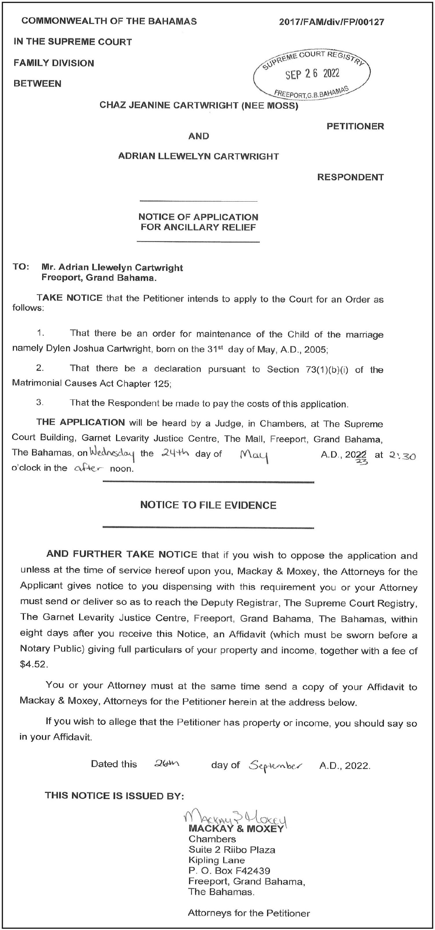 Attorneys for the Administratrix, No.259 Shirley Street, P.O. Box N 8958, Nassau, N.P., Bahamas