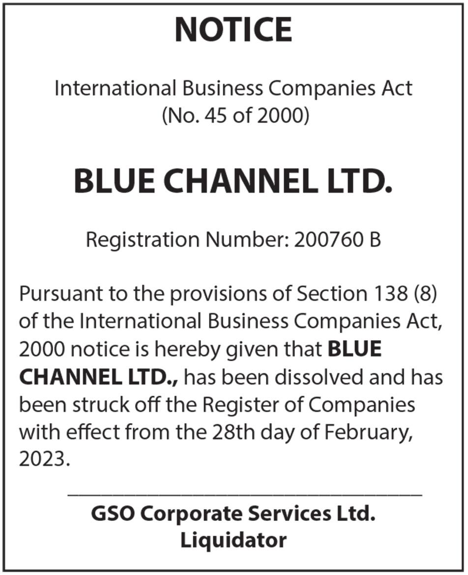 (a) TRINITY STRATEGIC LIMITED is in voluntary dissolution under the provisions of Section 138 (4) of the International Business Companies Act 2000.