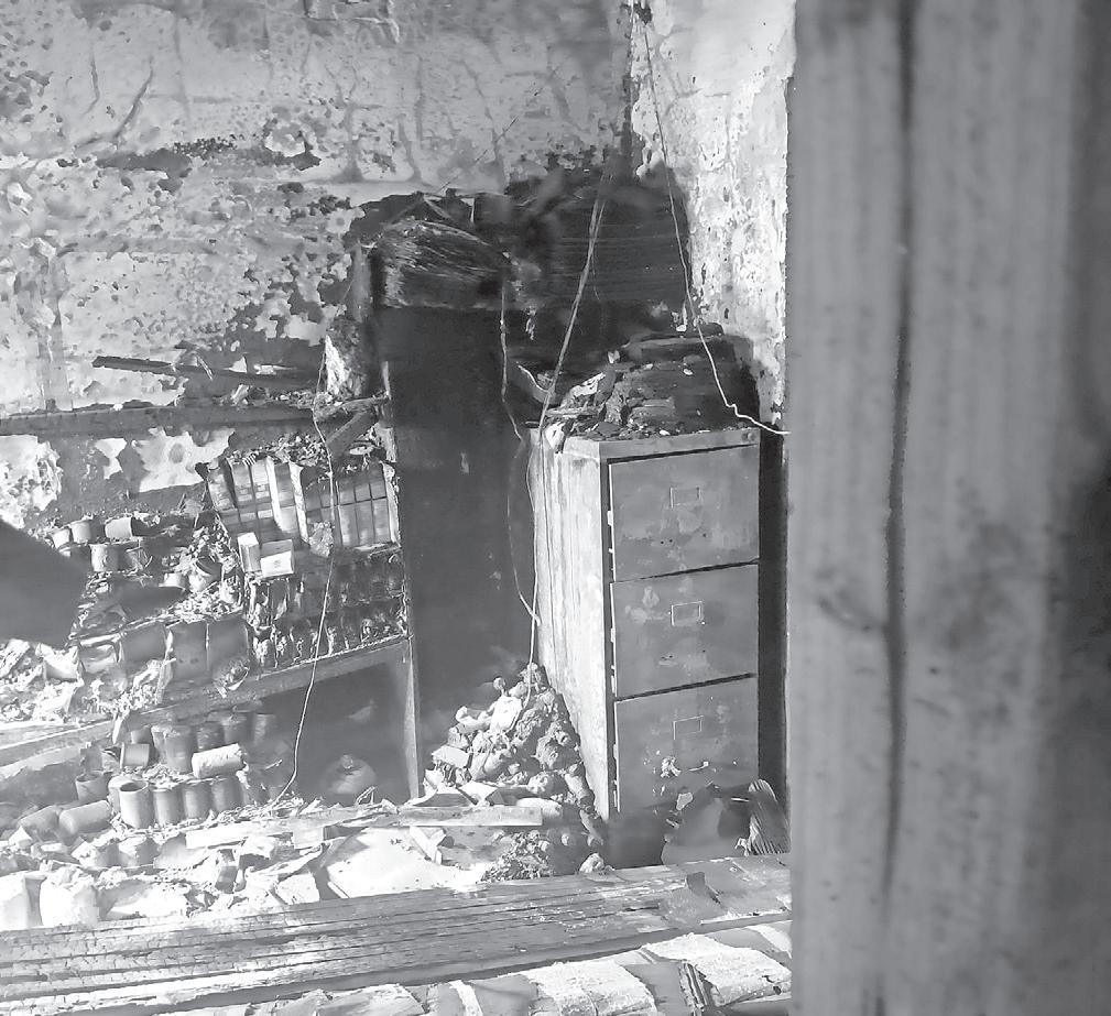 A video obtained by The Tribune shows the aftermath and includes an account from one of the church servers, who had returned to retrieve his grandmother’s hymn book. When he opened the door, he was met by thick smoke and zero visibility inside the sanctuary. Three fire trucks responded to the scene. Footage shows the church’s clerical office in ruins, with a large hole punched through the roof. The sacristy also sustained heavy smoke and heat damage. Water pooled along a hallway floor, and several areas will require deep cleaning and floor replacement. The pantry and the servers’ robing area were among the worst-hit, believed to be the fire’s point of origin. The rooms were blackened, with walls torn apart and piles of charred debris left behind.