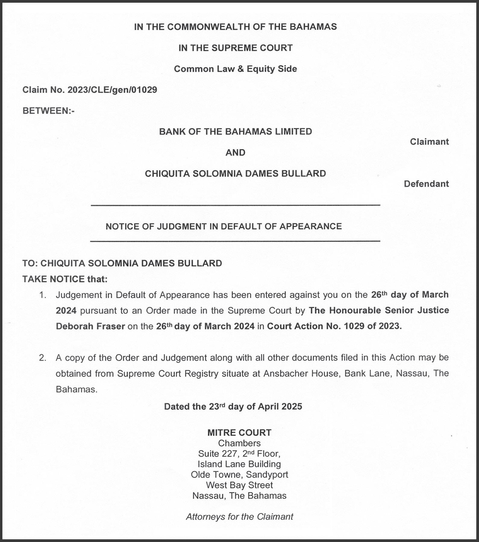 The honour comes in the birthday honours of King Charles III. Meanwhile, an OBE (Officer of Order of the British Empire) has been awarded to Talmage Raymond Leo Pinder Sr, JP, for service to business.