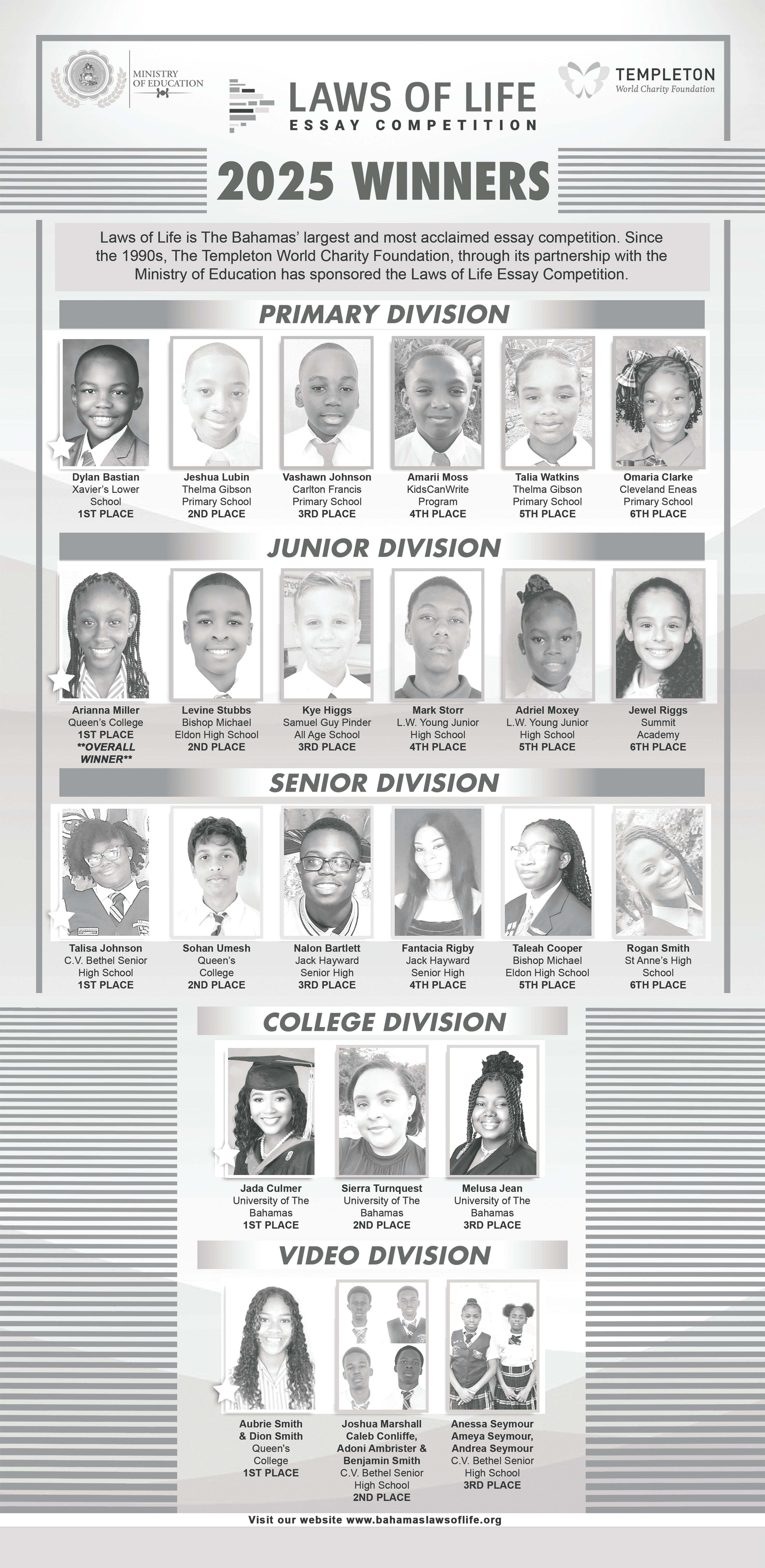 Students from the Bimini Primary School and Gateway Christian Primary School spoke about Bimini’s future. Renaj Dorsette was named second-place finalist, while Javari Davis emerged as the 2025 recipient of the Award of Excellence—earning induction into the Neil C Ellis Circle of Excellence. This