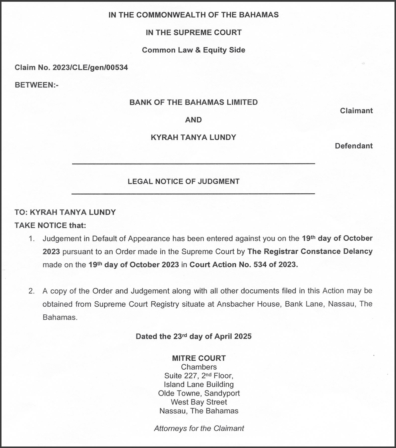 By LYNAIRE MUNNINGS, Tribune Staff Reporter lmunnings@tribunemedia.net