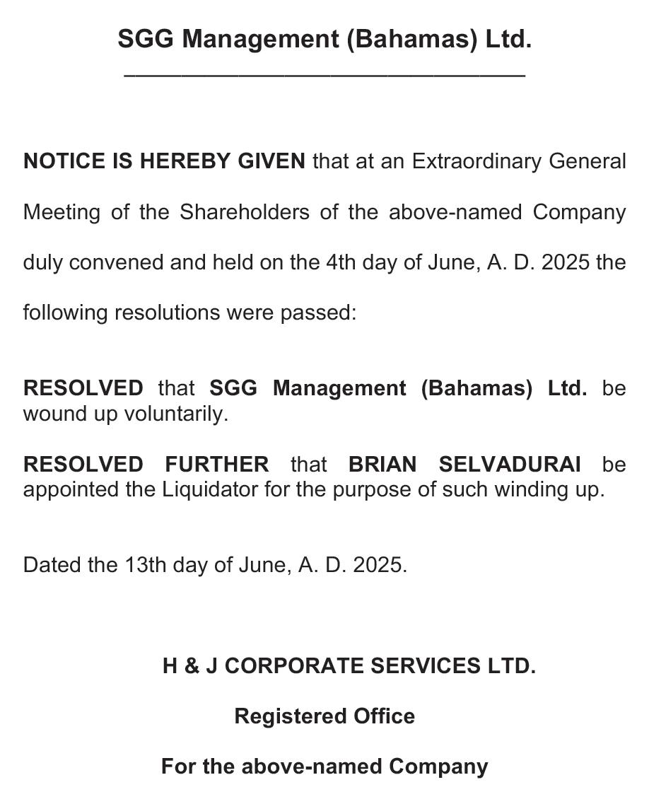 (c) The Liquidator of the said company is Octagon Management Limited, Poinciana House South, 1st Floor, East Bay Street, Nassau, Bahamas.