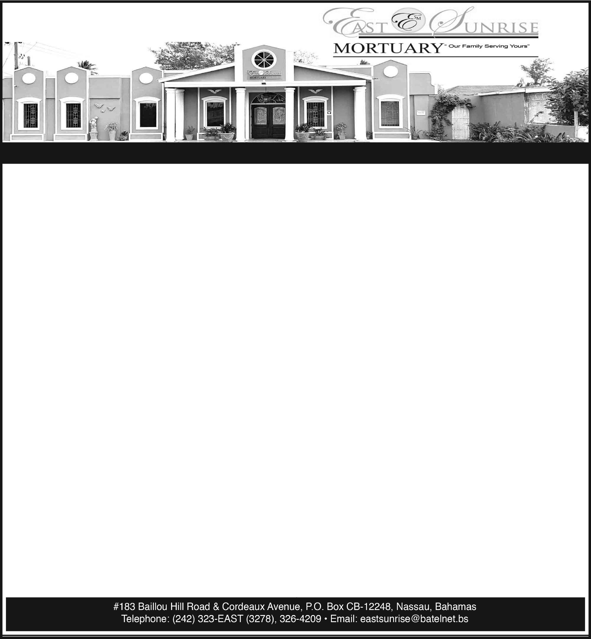 Viewing will be held at Eternal Rest Mortuary, #244 Market Street and Oxford Avenue, New Providence, The Bahamas on (TODAY) Thursday, 26th June, 2025 from 10:00 a.m. -12:00 noon.