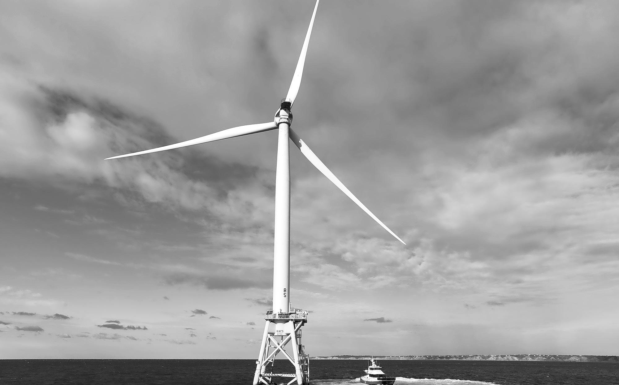 A BLOCK Island Wind Farm turbine operates, Dec. 7, 2023, off the coast of Block Island, R.I., during a tour organized by Orsted. Photo:Julia Nikhinson/AP