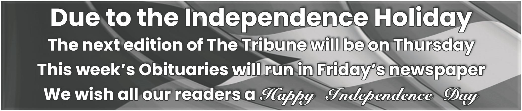 Due to the InDepenDence Day hol IDays, obI tuarIes w Ill be in Friday’s Pa Per