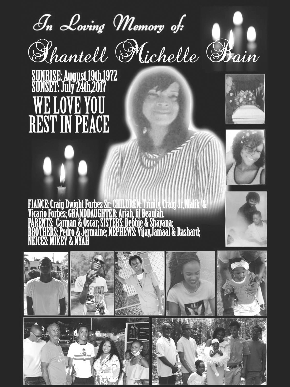 She is survived by her sons: Shane Bain, Dwane Deveaux & Deno Deveaux; sister: Diana Bain-Curtis; brothers: Clifford Bain, Gilbert Bain & Godfrey Deveaux and a host of other relatives and friends too numerous to mention.