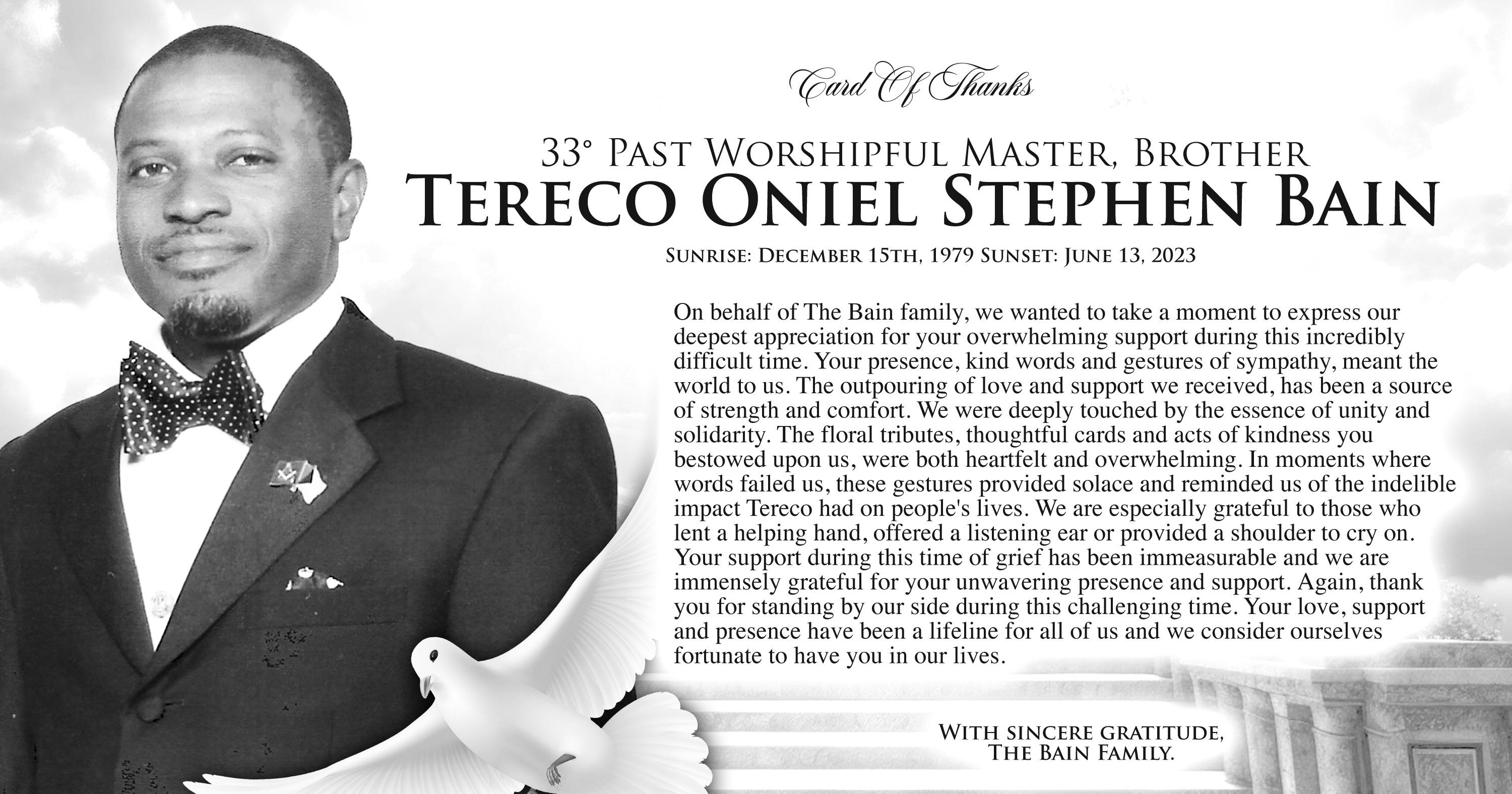 He was survived by his wife Terrylene Dean; Daughters: Angelique Shanna, Cyrelle, Trishchea, Ternicqua Shondra & Tamara; Sons: Kenson & Miguel; 7 grandchildren; Sisters: Cheryl, Shirley & Carolyn; Brother: Derek; numerous Brothers & sister-in laws, nieces, nephews, grand nieces & nephews, cousins at a host of other relatives and friends