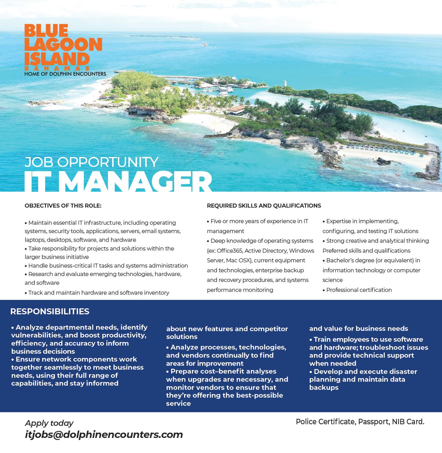 APPLY TO: Att: Human Resources Department Email: People@nas.bs Phone: 702-1000