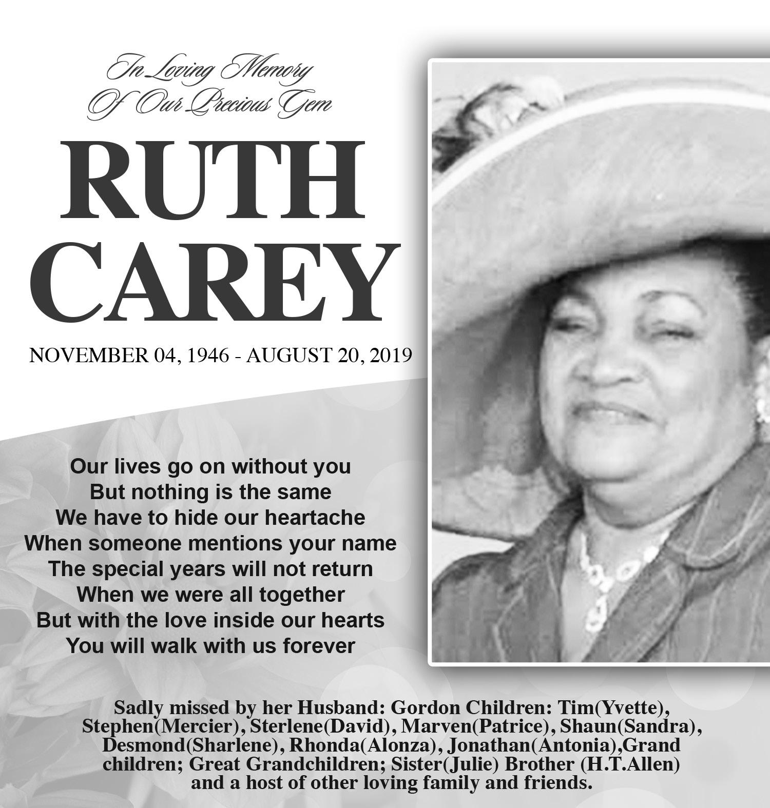 She is survived by her husband: George Fernander; children: Derick, Ricardo, Herbert, Ron Fernander and Christine Fernander Neilly; sisters: Tesha Smith, Ruthmae Sweeting; and numerous other relatives and friends.