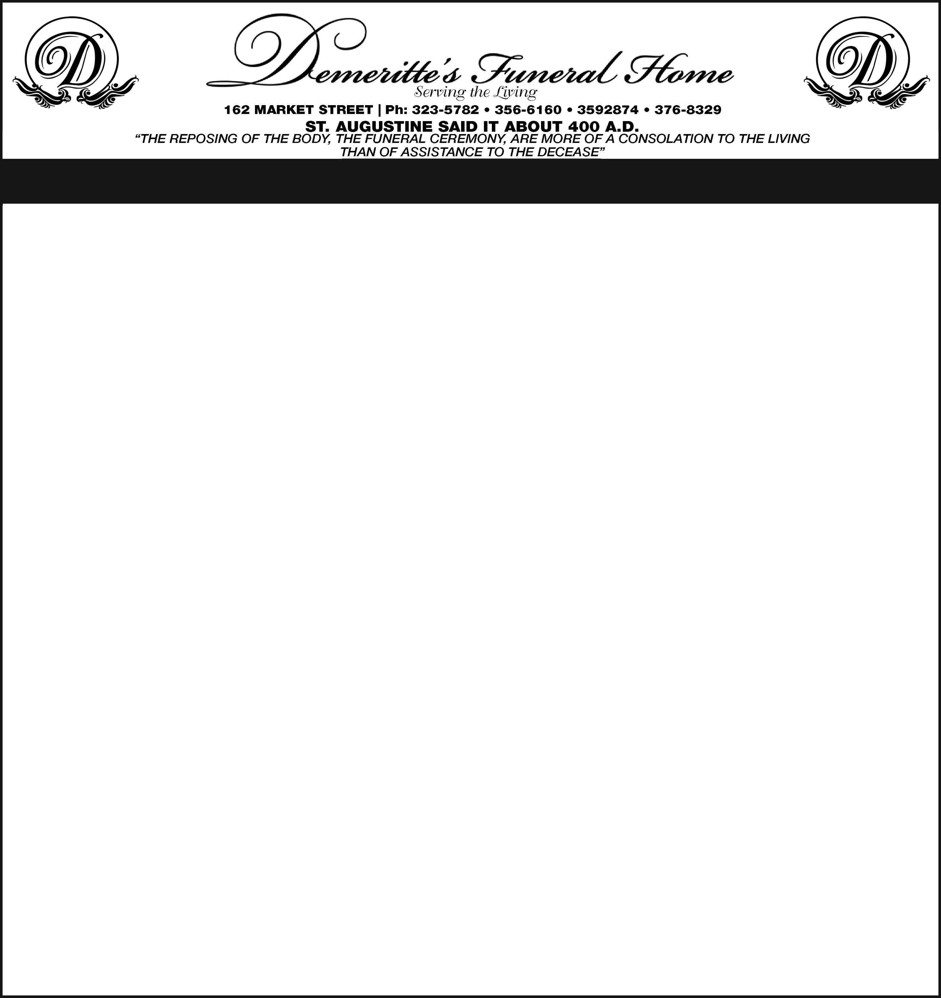 Left to treasure his memories are his sisters: Gloria Hall and Linda Brown; brothers: Anville Rolle; nieces and nephews: Alice Brown, Anastasia Delancy-Jones (Ramon Jones Sr.), Chantel Brown, Keresa and Bienca Hall and Omar Hall; grandnieces and grandnephews: Sharnice Jones, Chandie Bain and Ramon Jones Jr.; great grandniece: Ra’Liyah Cleare; great grandnephew: Deshawn Edwards; brotherin-law: Alphonso Mason; close friends: Kady Dawkins, Junior Scavella, Alfred Smith; numerous relatives and friends including: Arnette, Jeffrey, Cardie and Richard Dean, Lathan and Locksley Bastian and family; and the entire Washington Street family and other relatives and friends.