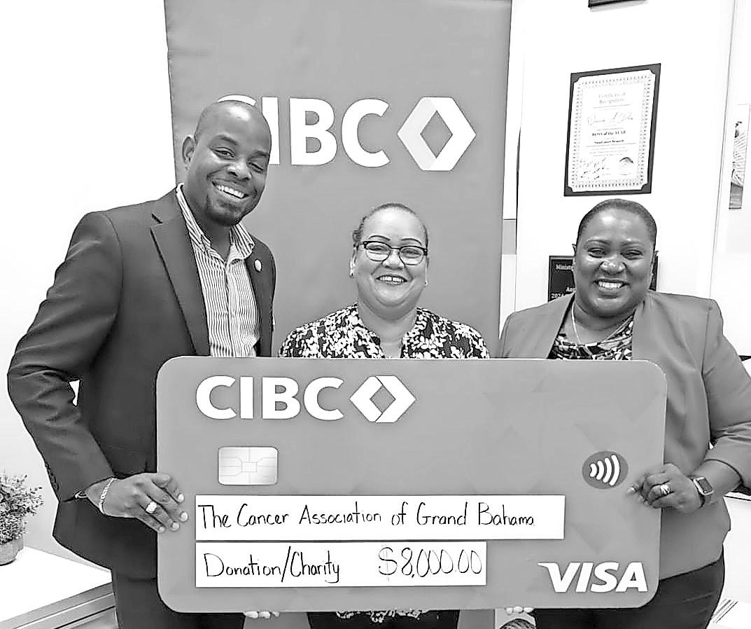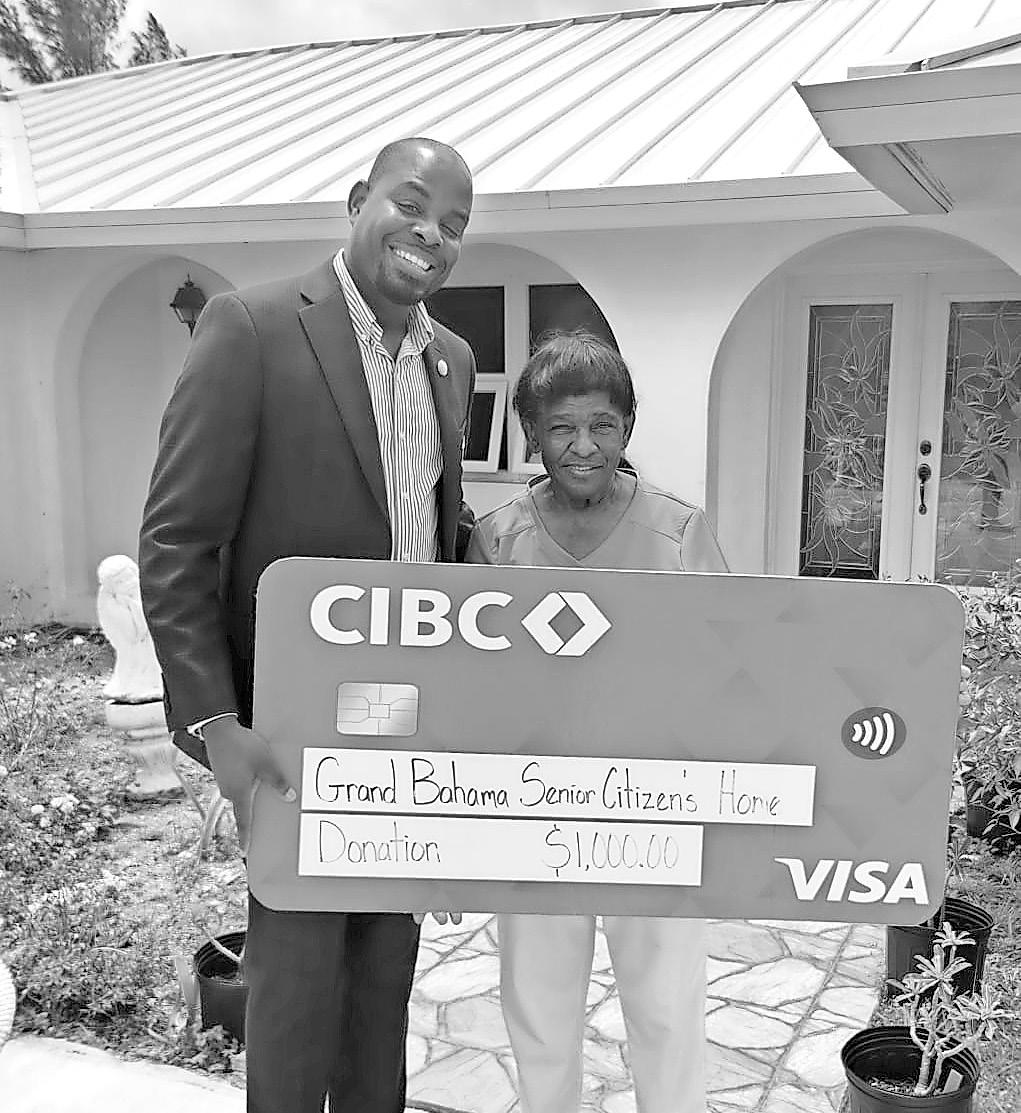 The Cancer Association of Grand Bahama and Grand Bahama Senior Citizens Home were recently presented with donations by CIBC Caribbean Grand Bahama representatives Quarindo Davis, the bank’s East Mall Branch senior branch manager and Renae Simms, the East Mall Branch’s customer service manager.