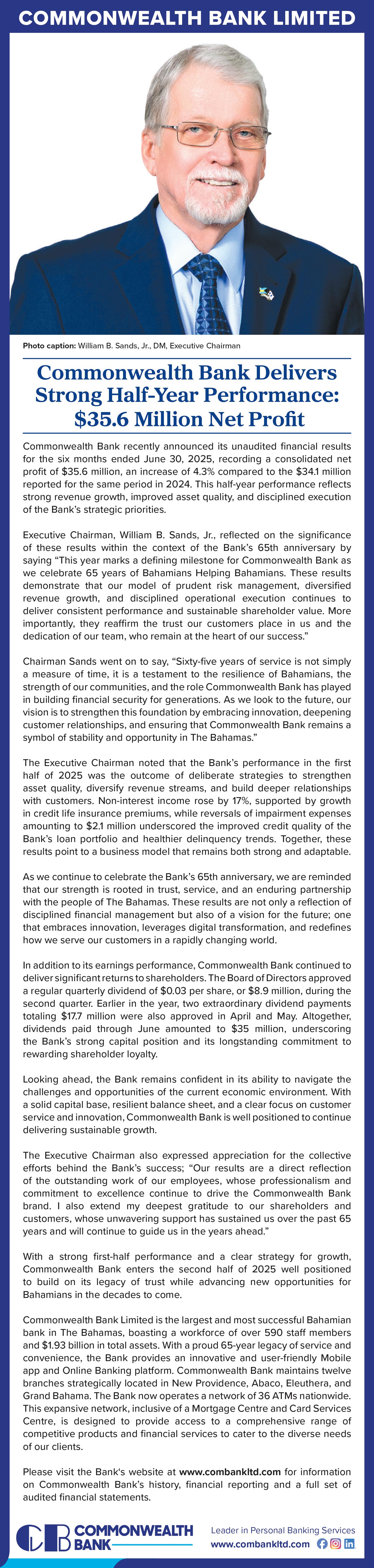 ON AUGUST 14 2025, the Disaster Risk Management (DRM) Authority in partnership with the Ministry of Works and Family Island Affairs installed signage on designated emergency hurricane shelters across the island of Grand Bahama. This effort is intended to clearly identify shelter locations and enhance public preparedness during the ongoing hurricane season. Review the 2025 Official Hurricane Shelter List for Grand Bahama to locate the designated shelter in their area available at: https:// getready.gov.bs/wp-content/ uploads/2025/05/2025-Hurricane-Shelter-List-DIR-20052025. pdf.