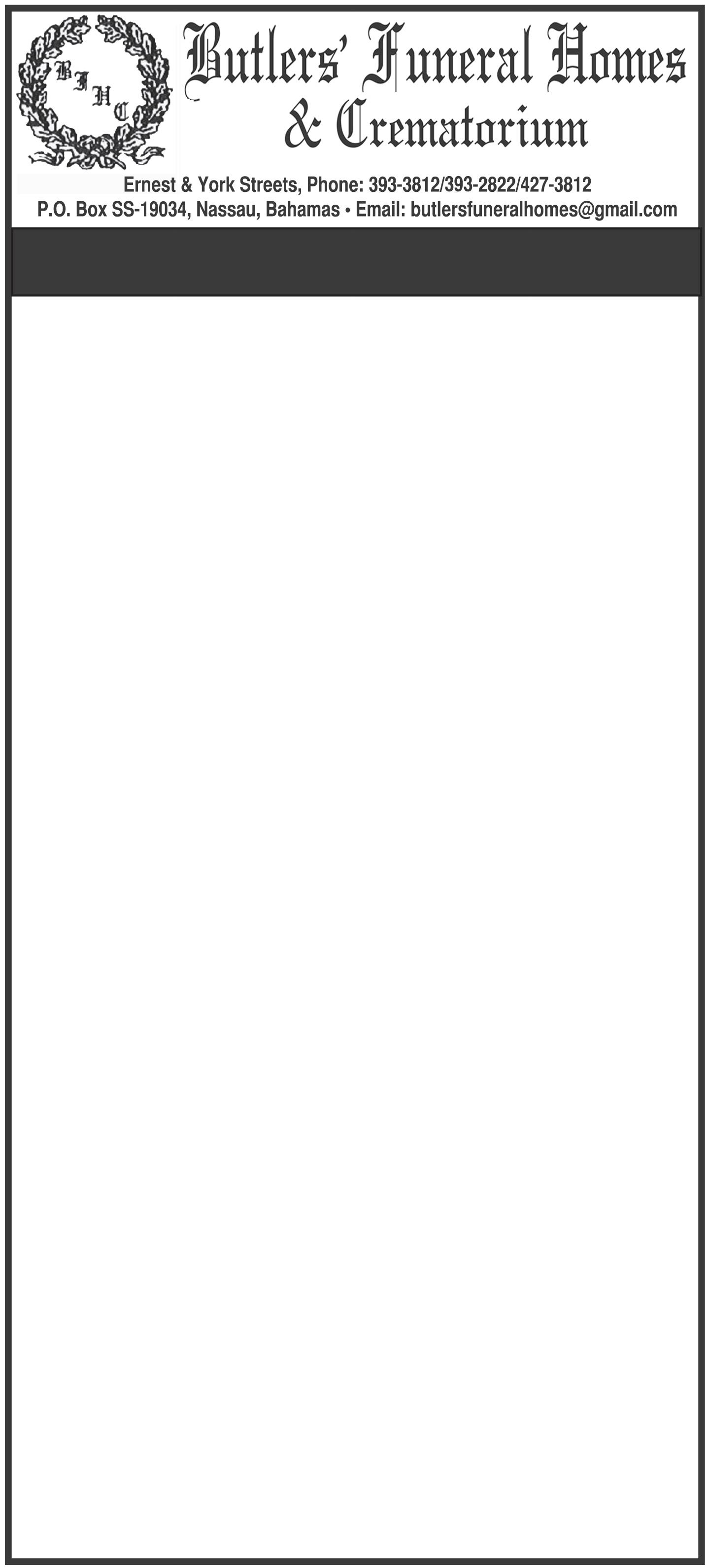 Friends may pay their last respects at Bethel Brothers Morticians & Crematorium, #44a Nassau Street (TODAY) Thursday 31st August, 2023 from 10:00 a.m. to 5:00 p.m.
