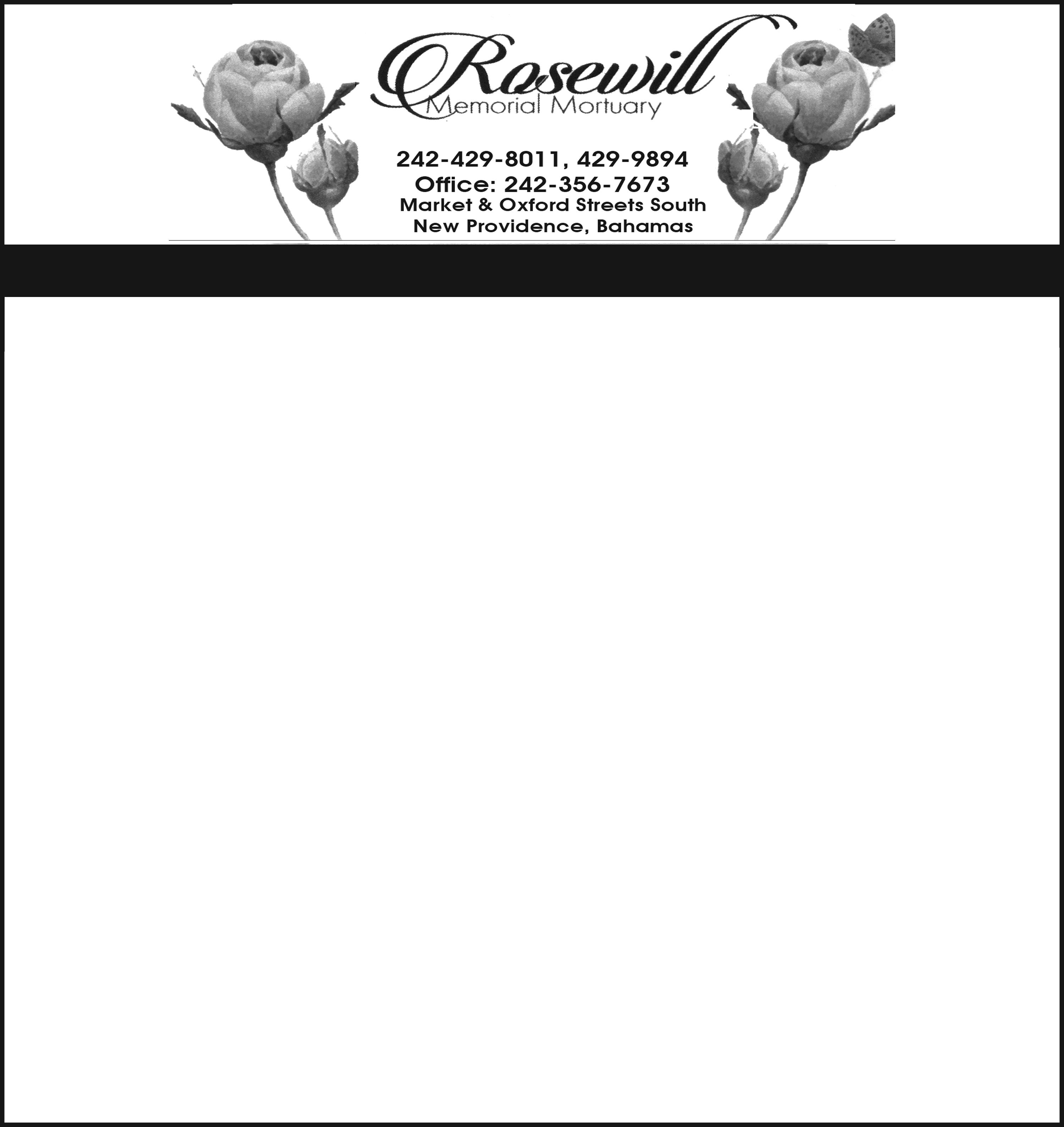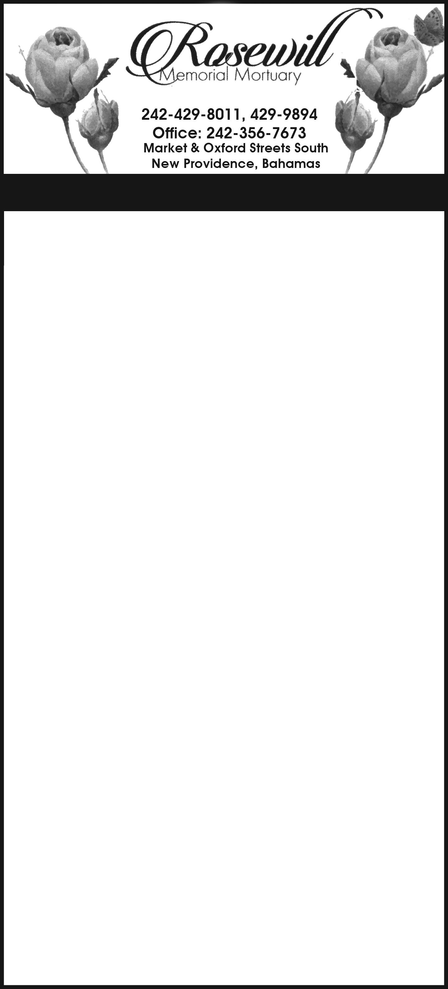 of Oxford Street, Mt. Royal Avenue, died at the Princess Margaret Hospital on Tuesday 29th August, 2023.