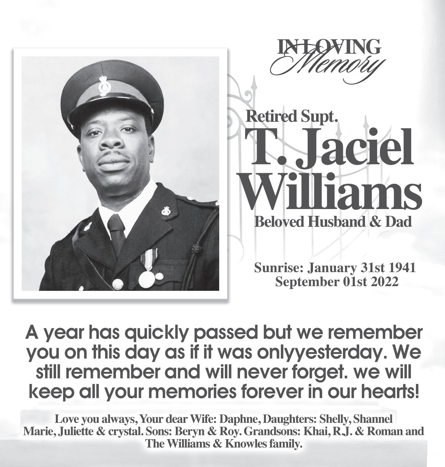 He is survived by his Wife: Cassandra Moss; His Children and their spouses: Ricardo & Flora Moss, Katie & Rev. Franklyn Clarke, Tito & Nekeva and Lashan Moss; Grandchildren and their spouses: Tamika & Min. Lamont Gaitor, Daniska & Jason Bonamy, Ustinov Clarke, Rickeya Moss, Kimberly & Shane Gibson, Megan, Morgan & Madison Moss, Dineko, DaunJanae, Simone, Pedro Jr., Petra Moss; Great-Grandchildren: Caleb Moss, Tori, Trinity & Ethan Gaitor, Tylah Lockhart, Aiden Gibson, Myeisha, Andy Jr., Sage, Layla, Asia, and Keneko Moss, Gelendina, Glendon & Shamano Cooper, and Jaylen Bonamy; Brothers: Monis, Patrick & Maxwell Moss; Sistersin-law: Joan, Thomasina and Sandra Moss; Nieces & Nephews and their spouses: Ethelmae & Tim Dames, Samuel Jr., Randy, Gifford, Shayanne, Norma, Angela, Andre & Gillian, Ambrose & Vera, Glen, Jerome Carolyn, Joycelyn, Theresa, Joseph, Joey, David, Jonathan, Michael, Anne, Brenda, Cassandra, Debbie, Marsha, Donahue, Michelle & Lenny Goffe, Donald & Pandora, Sterling, Sr. Lt. Gladstone & Shirleymae, Martin, John & Shavon, Sherry Moss, Ken Ogden Arahna. Patricia, Christopher, Donna, Catherine, Jerome Johnson, Jonice Kemp, Julian Knowles, Janiska Major, Jocelyn Missick, Juan Cartwright, Bertram Miller; Godchildren: Nadia Young,