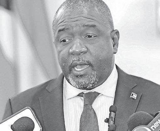 WAYNE JONES, a 27-year veteran of the Miami Beach Police Department, is sworn in as Miami Beach’s first black police chief in the city’s 108-year history at the New World Center in Miami Beach, Florida, on Thursday, August 31, 2023. Mr Jones is Bahamian.