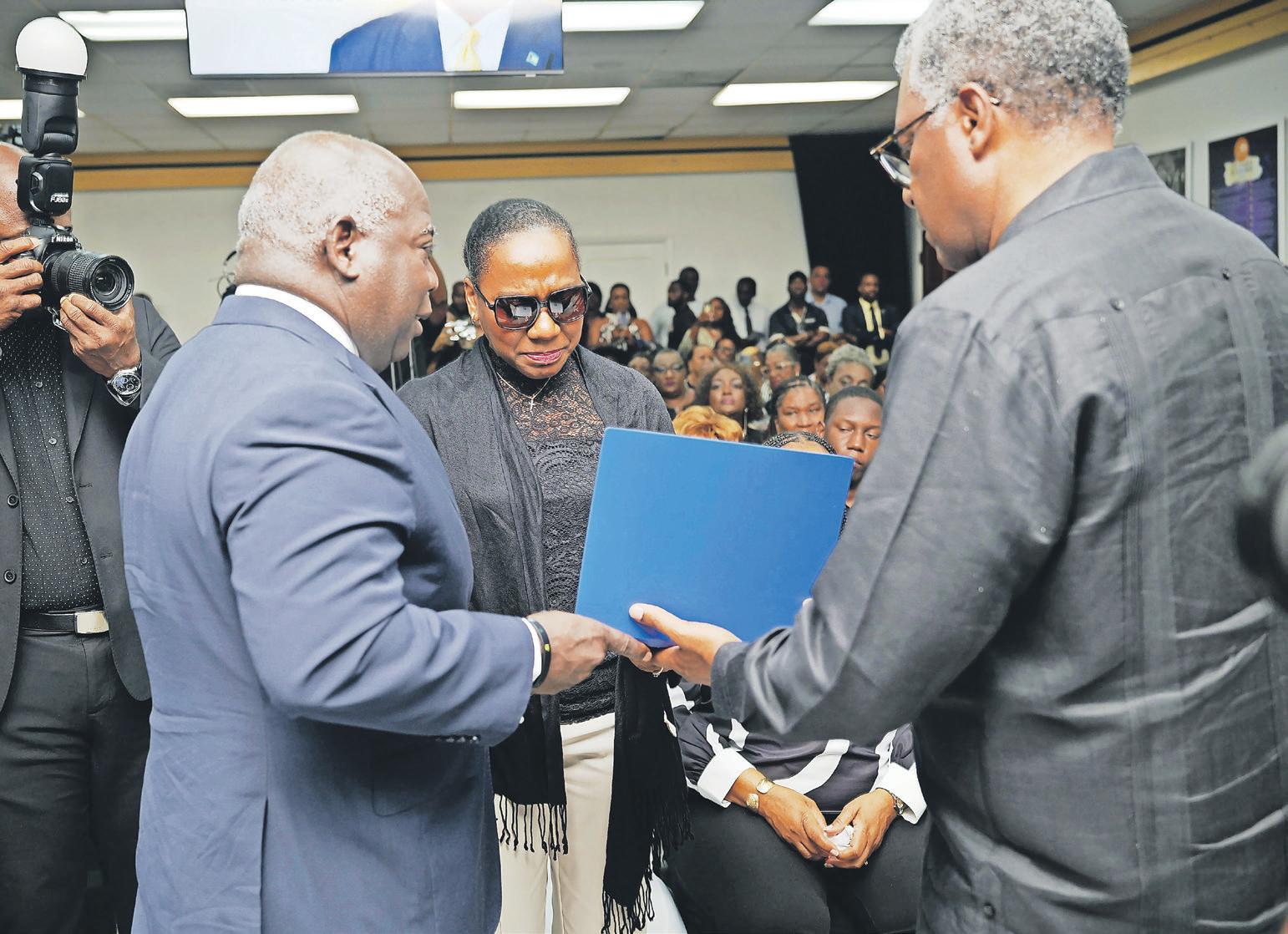 His wife accepted a posthumous honour on his behalf — the title of steward councillor — presented by PLP chairman Fred Mitchell and Prime Minister Philip “Brave” Davis.