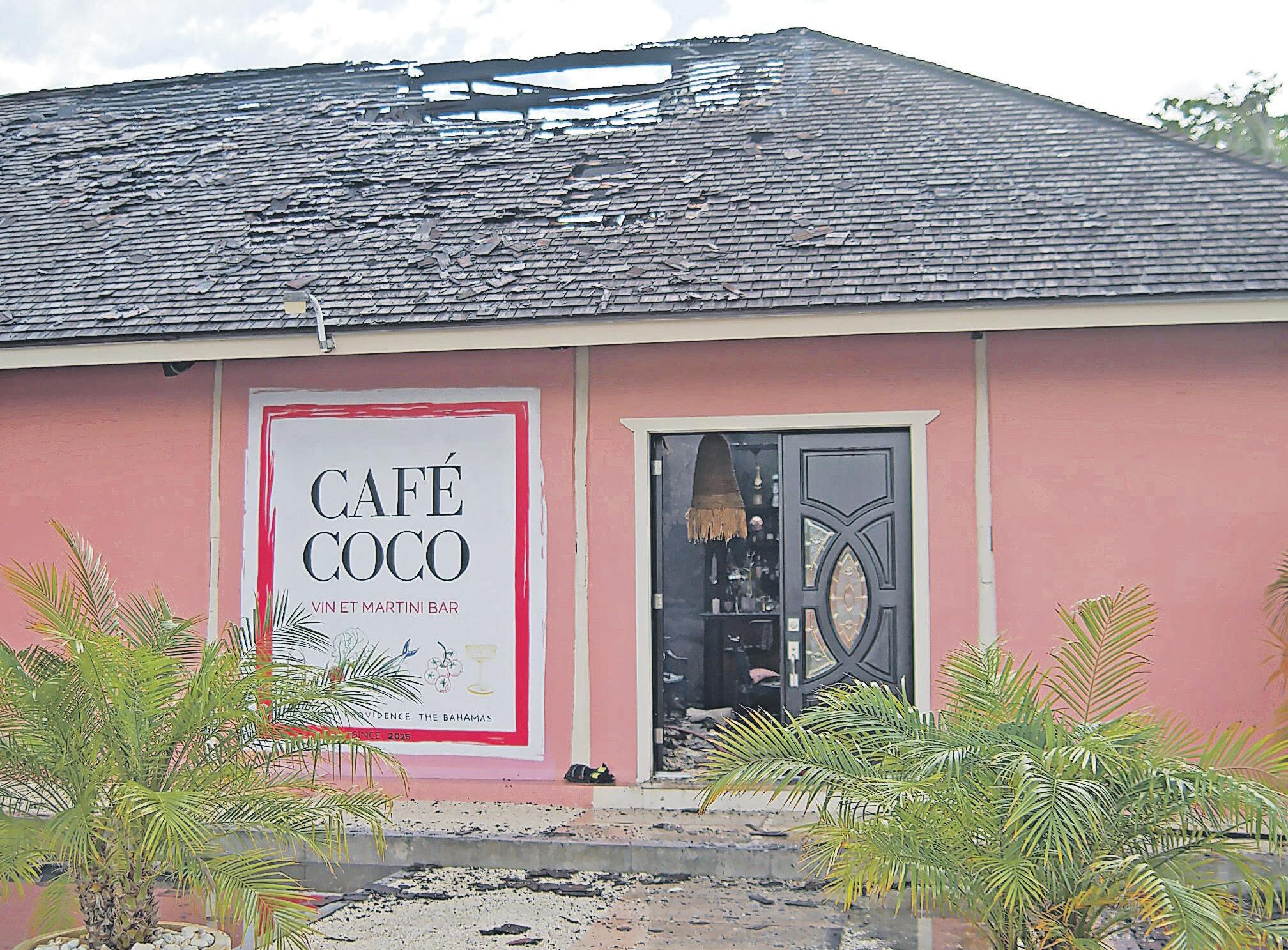 A ROUTINE Thursday afternoon turned disastrous when Café Coco, once known as Cocoplum Restaurant, was gutted by fire yesterday. The blaze erupted after two gas workers tried to fill cylinders, sparking an explosion that left both men with upper-body injuries. They were taken