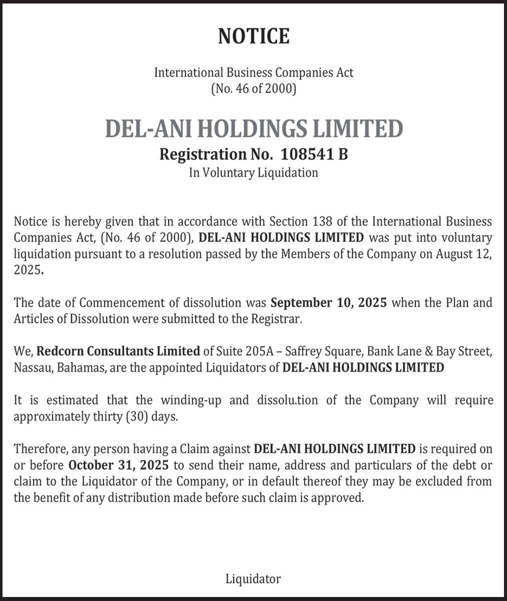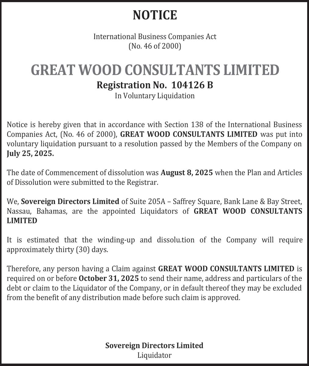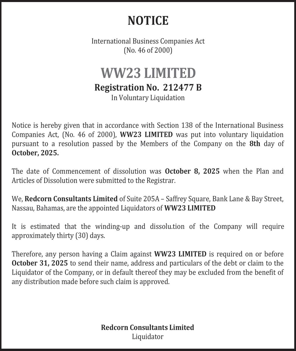 a resident of #13 Stew Fish Drive, will be held at Bahamas Harvest Church, John F. Kennedy Drive, on Thursday, October 16, 2025 at 10:00 a.m. Officiating will be Pastor Hervis Bain III. Cremation follows