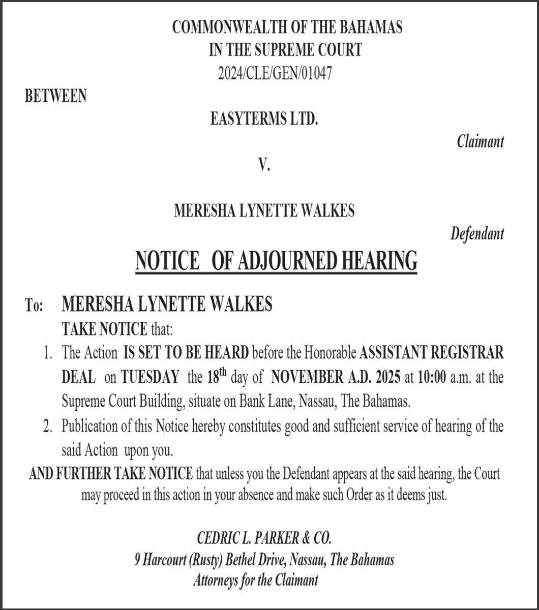By EARYEL BOWLEG Tribune Staff Reporter ebowleg@tribunemedia.net