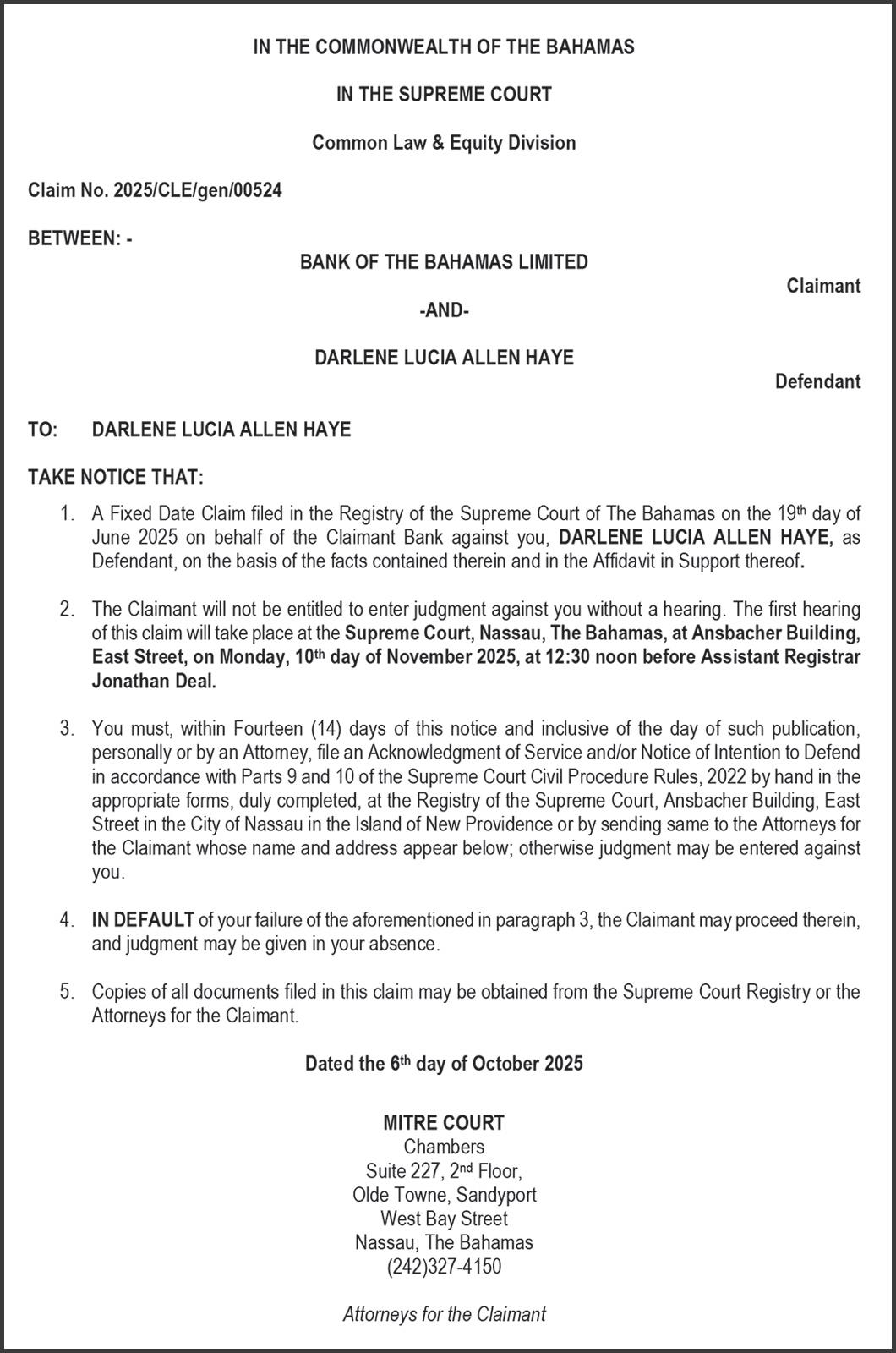 A PROMINENT attorney is calling for the Grand Bahama Port Authority and its affiliates to guarantee the Taino Beach bridge’s rebuilding by posting a bond due to their “less than stellar” upkeep of Freeport.