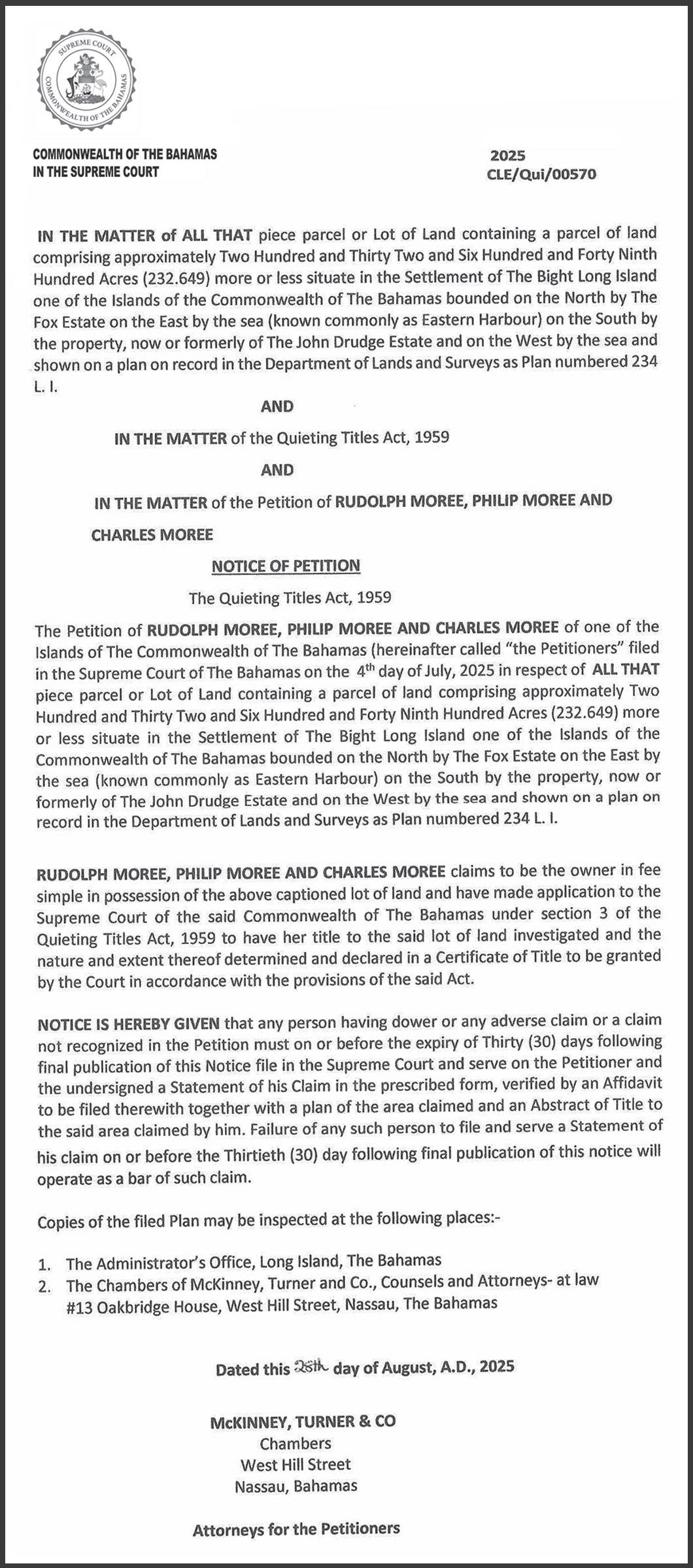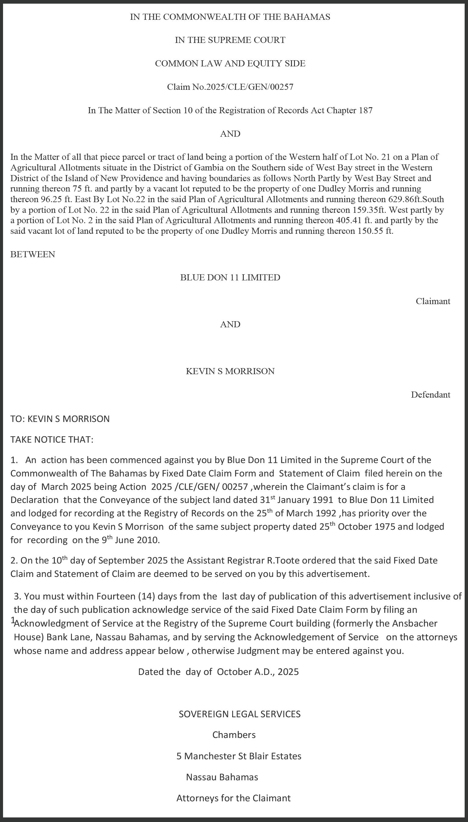 is applying to the Minister responsible for Nationality and Citizenship, for Registration/ Naturalization as a citizen of The Bahamas, and that any person who knows any reason why registration/ naturalization should not be granted, should send a written and signed statement of the facts within twenty-eight days from the 17th day of October 2025 to the Minister responsible for nationality and Citizenship, P.O. Box N-7147, Nassau, New Providence, The Bahamas.