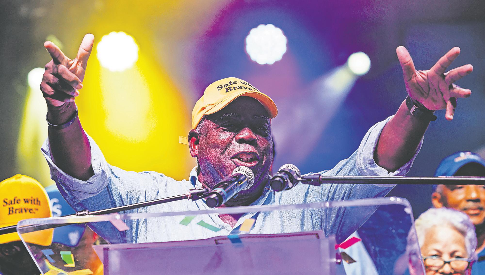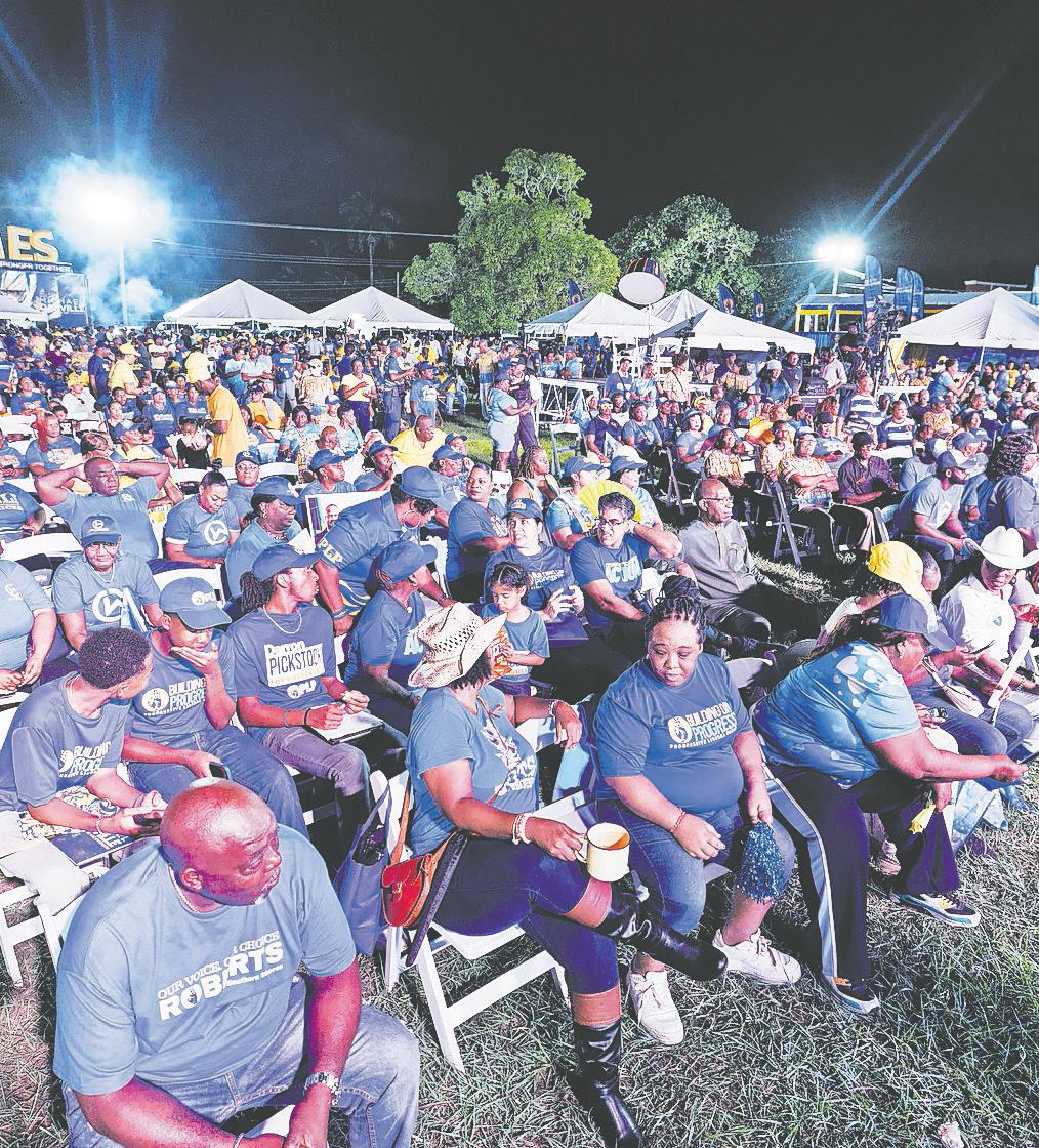 The rally, held at Golden Gates Assembly Park, drew hundreds of supporters and several Cabinet ministers, including Prime Minister Philip “Brave” Davis and Deputy Prime Minister Chester Cooper, who both urged voters to return the PLP’s candidate in the November 24 by-election.