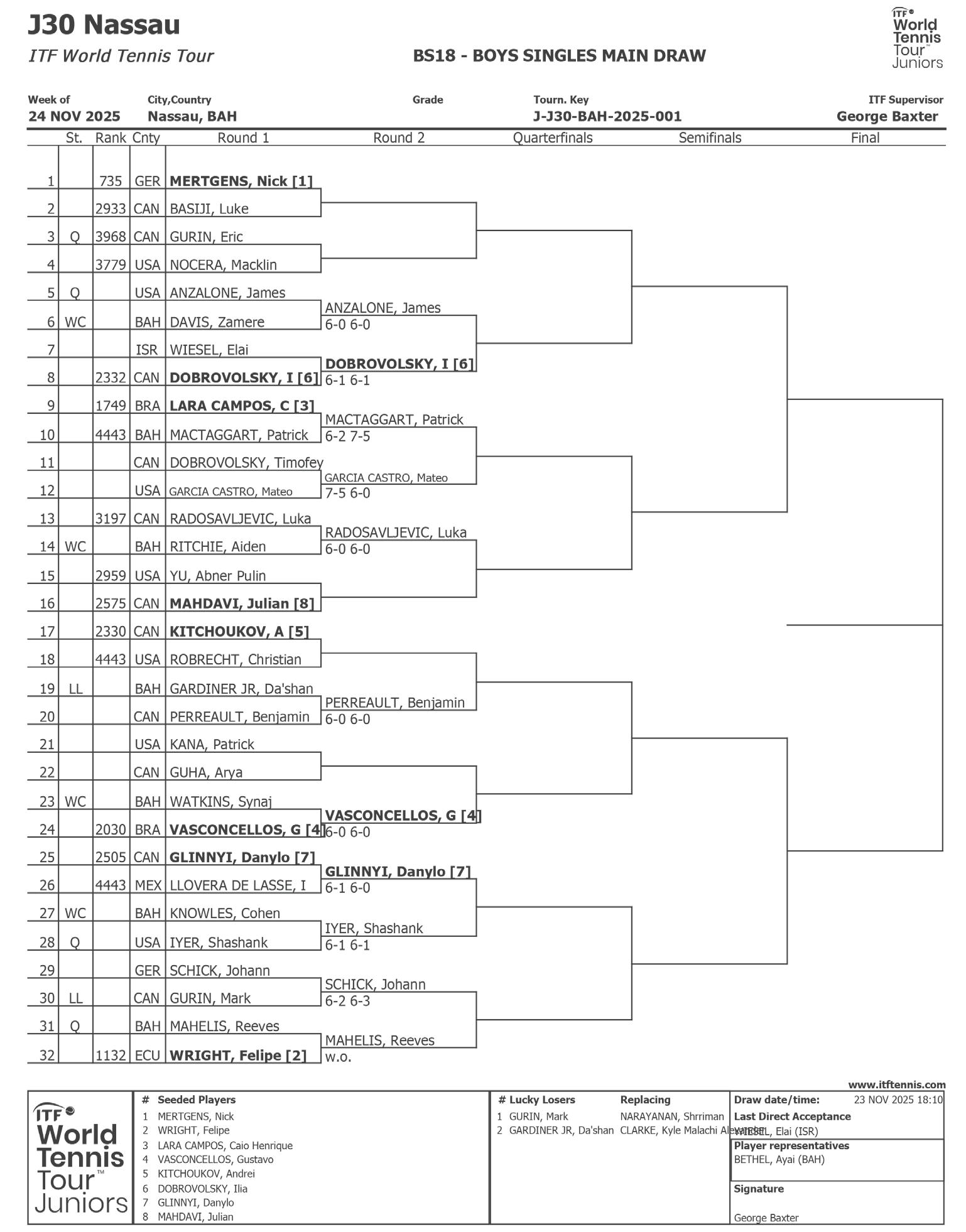 THE Bahamas Lawn Tennis Association (BLTA) is serving up another week of high-level junior competition as the ITF World Junior Tennis Tour moves into round two at the National Tennis Centre after a successful round one showcase yesterday. The qualifiers for the main draw rounds were held over the weekend. This tournament, which includes players