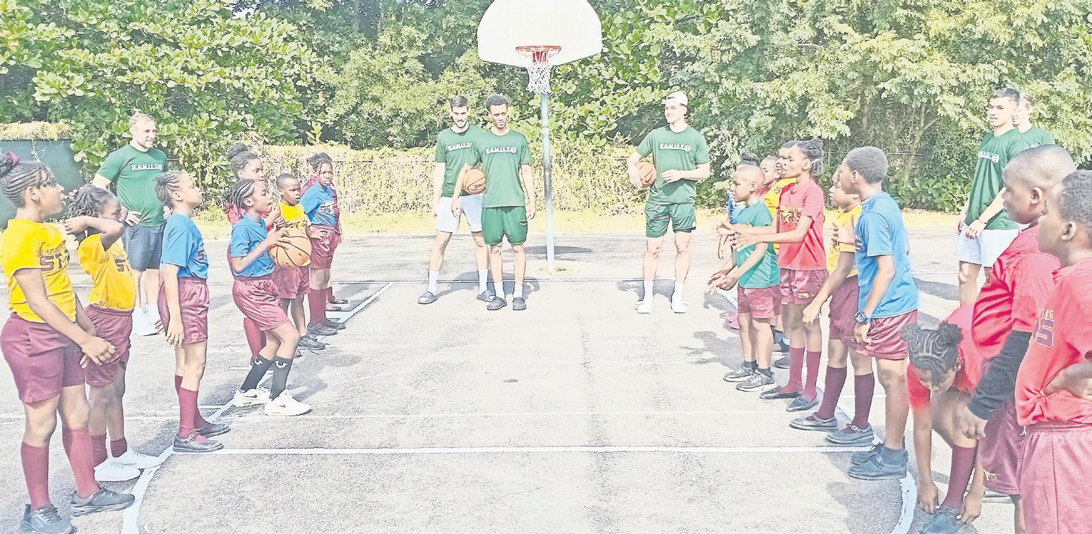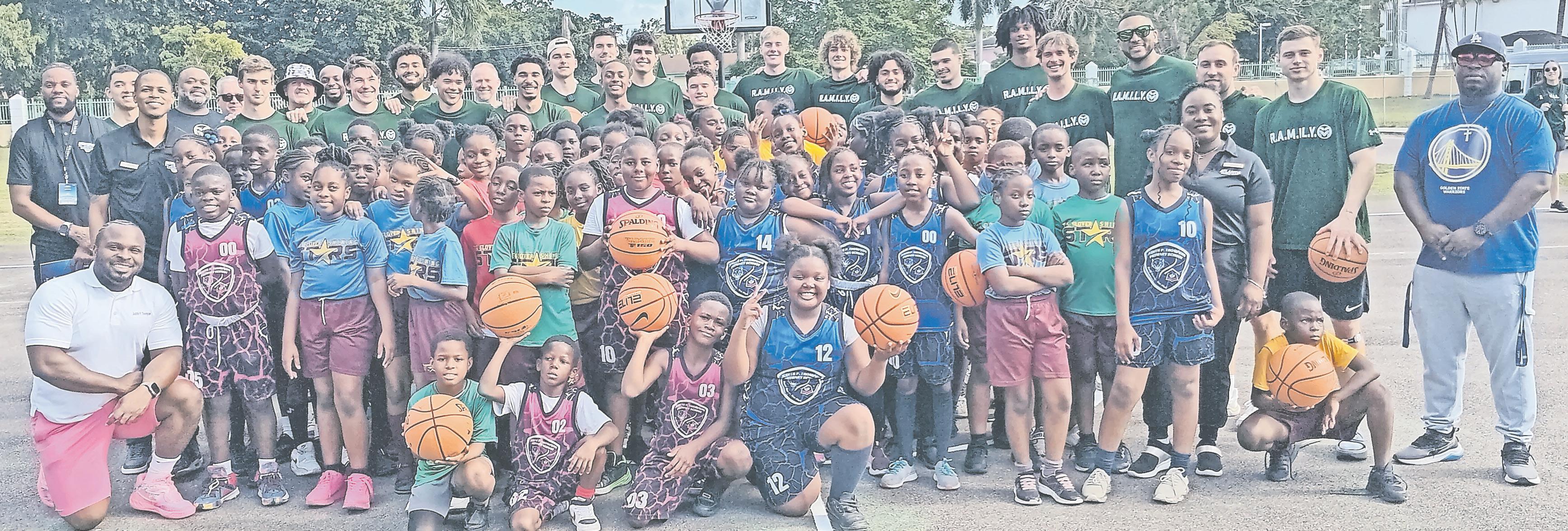 THE Colorado State University Rams men’s basketball team with some of the country’s future basketball players during the one-day clinic yesterday at TG Glover Primary School.