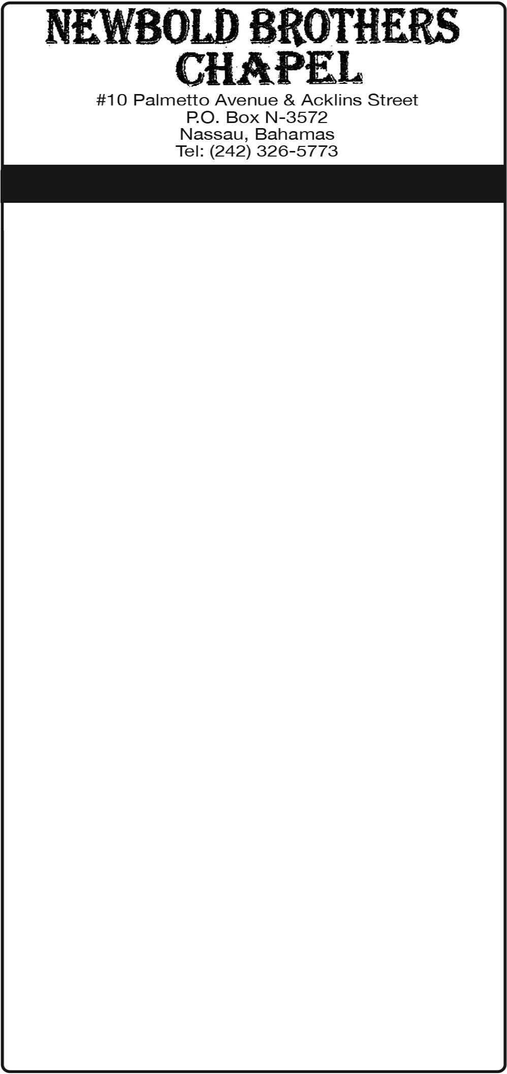 Viewing will be held at Wesley Methodist Church, North Palmetto Point, Eleuthera on Friday from 7:00pm to 9:00pm and on Saturday until service time.