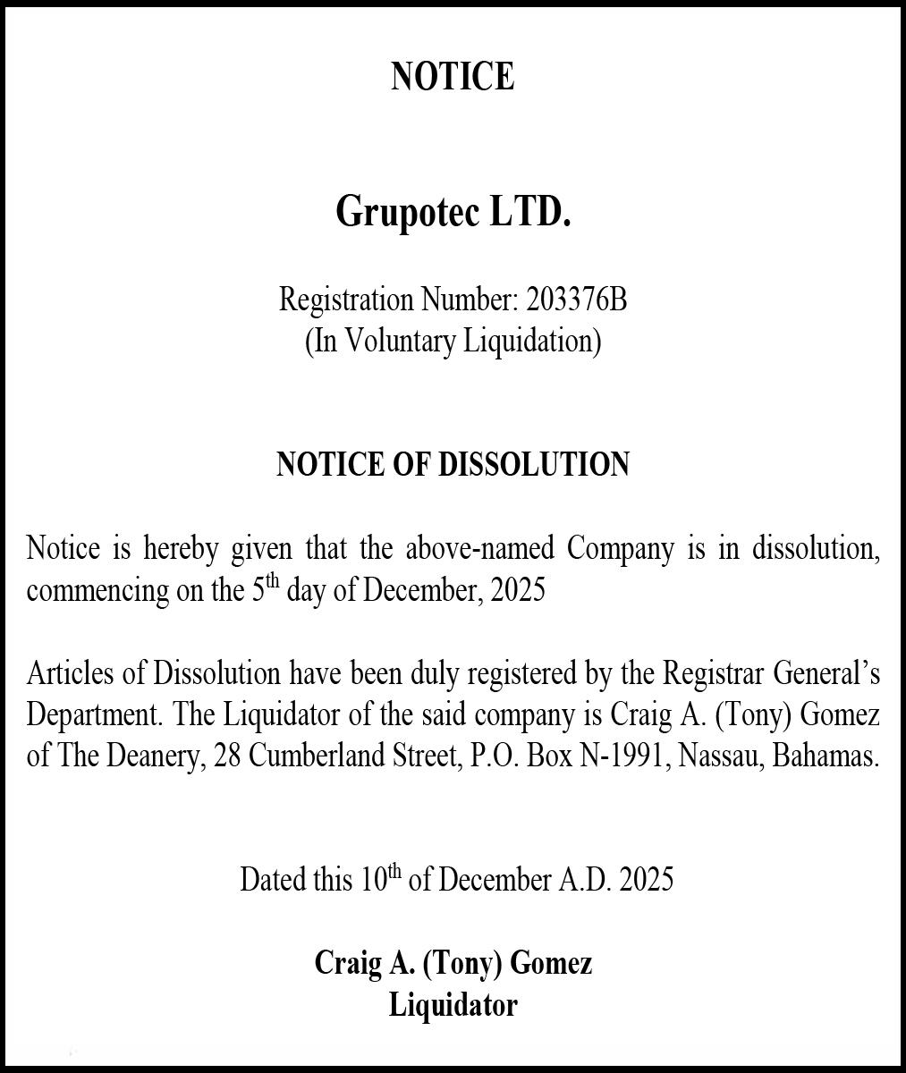NOTICE is hereby given that GUENSON GENSLEE BELVY of Flamingo Court, Nassau, The Bahamas is applying to the Minister responsible for Nationality and Citizenship, for registration/naturalization as a citizen of The Bahamas, and that any person who knows any reason why registration/ naturalization should not be granted, should send a written and signed statement of the facts within twenty-eight days from the 10th day of December, 2025 to the Minister responsible for nationality and Citizenship, P.O. Box N-7147, Nassau, Bahamas.
