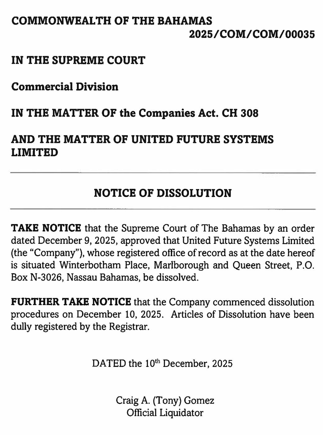 NOTICE is hereby given that FREDERIC RONALD of P.O. Box N1470 Bamboo Town, Nassau, The Bahamasis applying to the Minister responsible for Nationality and Citizenship, for Registration/ Naturalization as a citizen of The Bahamas, and that any person who knows any reason why registration/naturalization should not be granted, should send a written and signed statement of the facts within twenty-eight days from the 10th day of December 2025 to the Minister responsible for nationality and Citizenship, P.O. Box N-7147, Nassau, New Providence, The Bahamas.