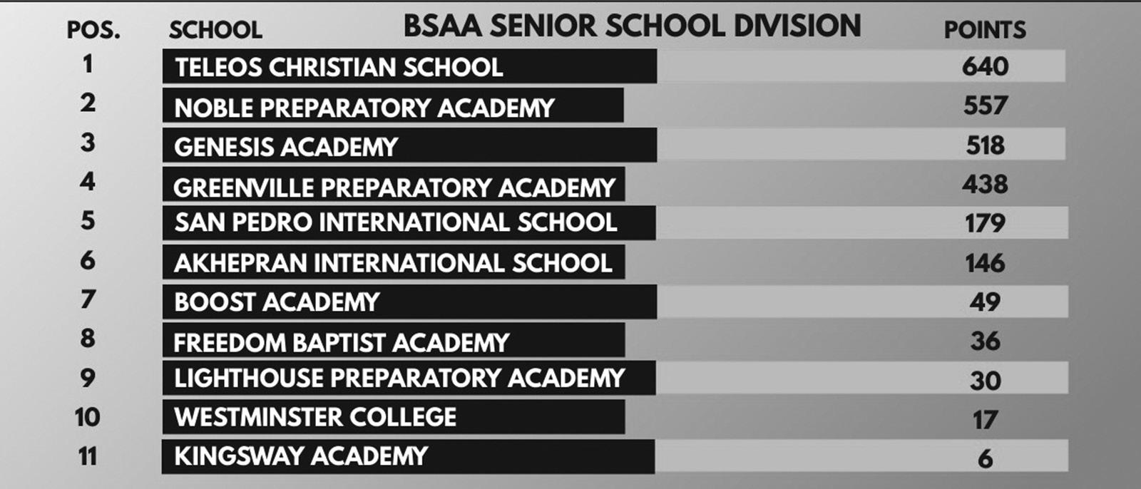 were very disappointed because we had to sit and wait. We didn’t get a final update until late February that the door was opened after Columbia dropped out. We then put all the wheels in motion to get this team ready.” Ranked at number 59 in the world, Sweeting said the Bahamas should not have been there, but they took advantage of the opportunity to compete at the last minute. “We came here and we performed, but when you tell your team that you have to play the number one ranked team in our region in Mexico, who is the number two team in the world behind Japan, the guys were a little timid. “We played well, but we didn’t play well enough to keep up with them. Then we came up against Brasil. We knew we had a chance to beat them. We were tied 0-0 up to the fifth inning, but we ended up losing 9-4. “We had a big win against Panama with a JUNIOR BASEBALL TEAM ‘DIDN’T PLAY WELL ENOUGH’ By BRENT STUBBS Chief Sports Editor bstubbs@tribunemedia.net SEE PAGE 13 SEE PAGE 14 MARTIN “Pork” Burrows, third from left, is shown with the other umpires and coaches for the championship game. NEW PROVIDENCE PUBLIC PRIMARY SCHOOLS SPORTS ASSOCIATION VOLLEYBALL PLAYOFFS BEGIN TODAY By BRENT STUBBS Chief Sports Editor bstubbs@tribunemedia.net GOOD SPORTSMANSHIP: The New Providence Public Primary Schools Sports Association’s 2024 Volleyball Tournament playoffs are set for today.