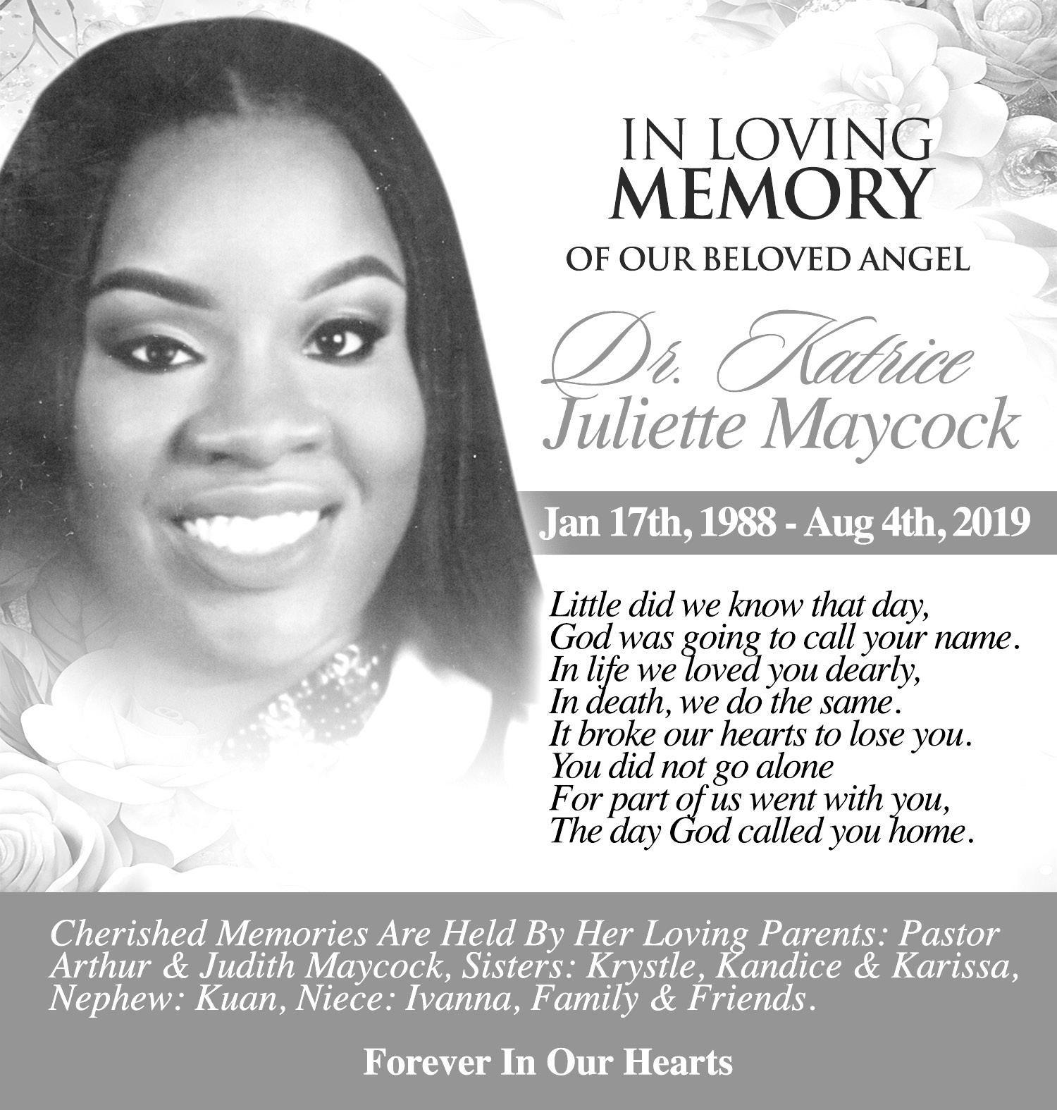 She is survived by her uncles: Charles Davis of Eight Mile Rock, Freeport, Grand Bahama, Bahamas, Maurice Auther; aunts: Deborah Arthur, Kim Stubbs, Mary Ferguson and Elizabeth Davis and other relatives and friends.