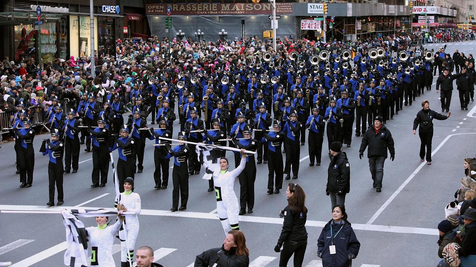 Giveitupforthe98thMacy’sAnnualThanksgivingParadeheldinNewYorkCity TheMacy’sThanksgivingparadeisoneofthe mostpopulartraditionsfortheholidays Theparadekickedoffat7:45amatCentralPark Thisyear,therewere31floatsfeaturingthe debutofaBabySharkfloatandWonderBread’sTheWondership Theparadewentonforabout3hoursandconcludedatMacy’s HeroldSquareat11am.Numerousperformerstookpartintheparadesuchas:GloriaEstefan,BlancoBrown,andBigTimeRush. Concludingtheparade,Santasleigheddownthestreetteasingforwhat’syettocome.