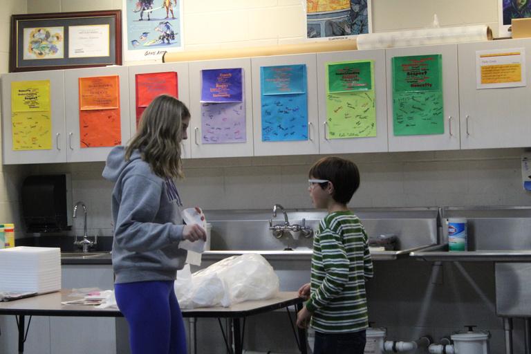 BrookeParham,8,and JaxsonFlippin,6,gotogettheir supplies,sotheycanbeginthe project.