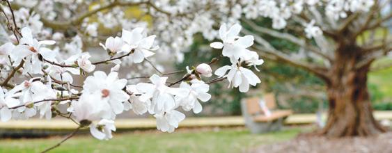 For its modest acreage, the property is eclectic and inviting: a partial inventory includes roughly 30 specimen trees and more than 250 rhododendron and azalea, a dazzling variety of magnolia, an apiary, garden rooms, and Liam’s Train, a childsized handmade wooden locomotive. “There’s so much diversity in its topography and in its growing conditions,” says Brockway, Trustees’ Program Director for Cultural Resources, “and it’s all within a small parcel of land.”