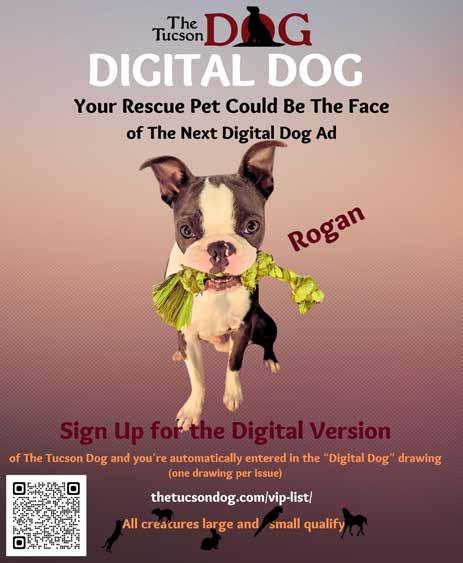 As always, I am filled with wonder and admiration meeting the many Tucsonans who give their time, attention, and donations to our animalrelated charities. It is evident that the success of saving animals in need and raising awareness of prevention is not possible to do alone. We are all in this together and even the smallest of us are an important part of saving our most vulnerable. Please reach out to help, get informed, share, and give what you can.
