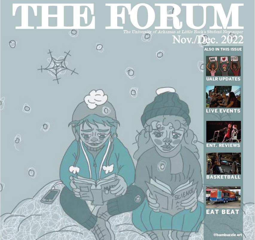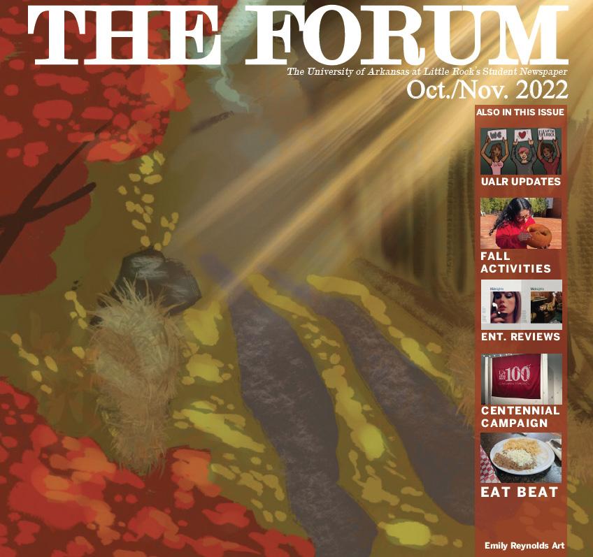 The Forum is the official student newspaper at the University of Arkansas at Little Rock. The Forum is funded in part by the student activity fee. The opinions expressed in The Forum are those of the staff and contributing writers and do not represent the official views of UALR. The Forum is published 7 times in each of the fall and spring semesters. The Forum editor can be reached at editor@ ualr.edu.