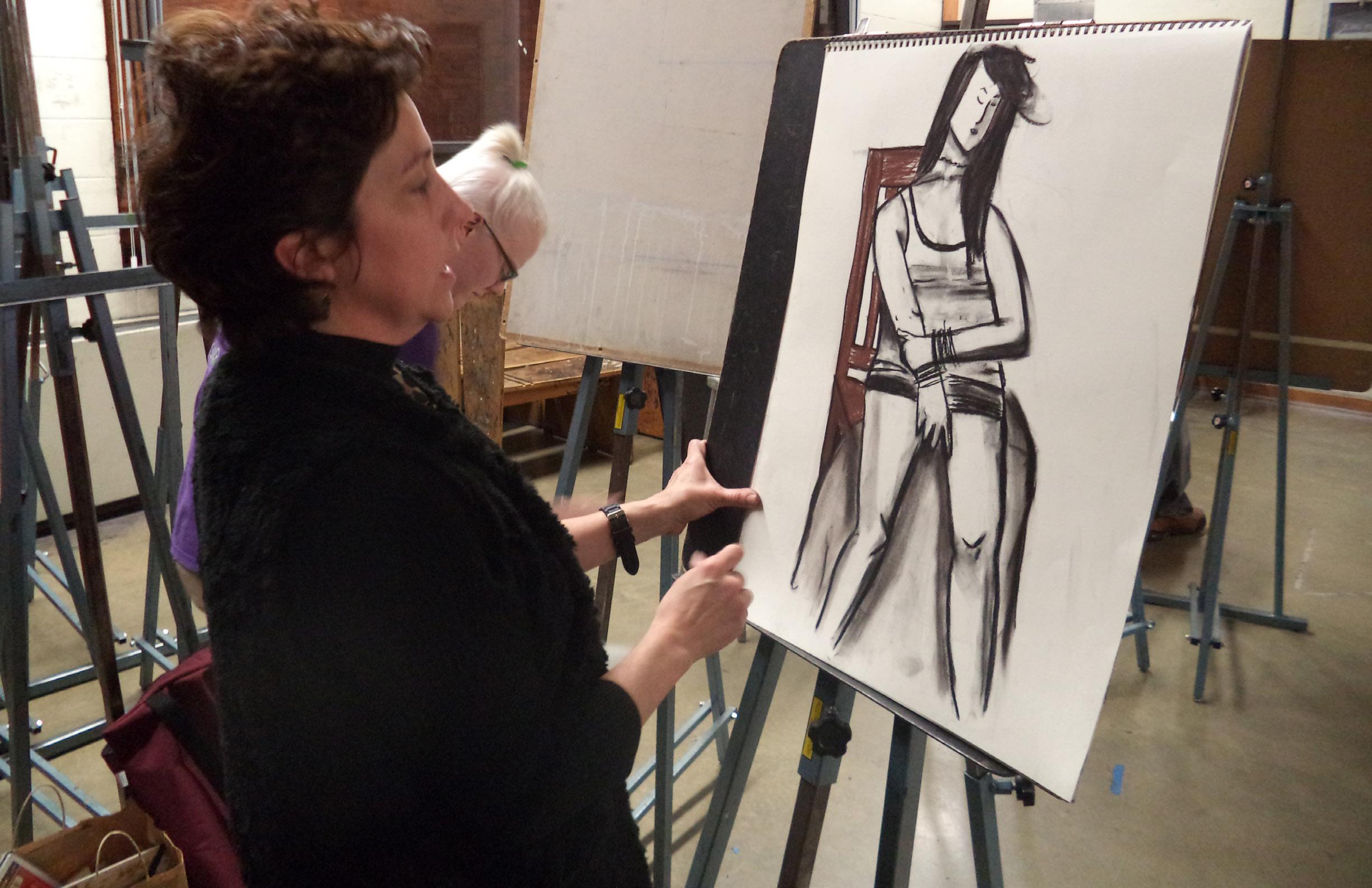 In the Figure Drawing classes, students work from strictly observation. “Students don’t have ‘projects’. The bulk of the class is a model on a stand and students draw what they see.” The drawings will last about two to three class periods.